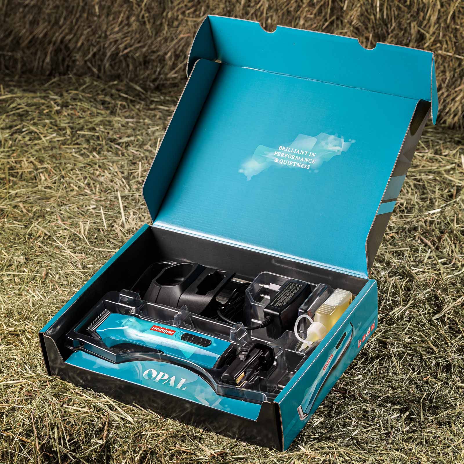 Mit einem voll aufgeladenen Akku kann man bis zu 240 Minuten kabellos scheren und hat somit doppelt solange Schurzeit als herkömmliche Schermaschinen. Innerhalb einer Stunde ist der Akku vollständig geladen. Dank der im Akku integrierten Ladestandsanzeige ist die zur Verfügung stehende Restdauer jederzeit ersichtlich. Die Opal ist ergonomisch geformt und liegt perfekt in der Hand. Zudem ist die Maschine sehr leicht und klein.