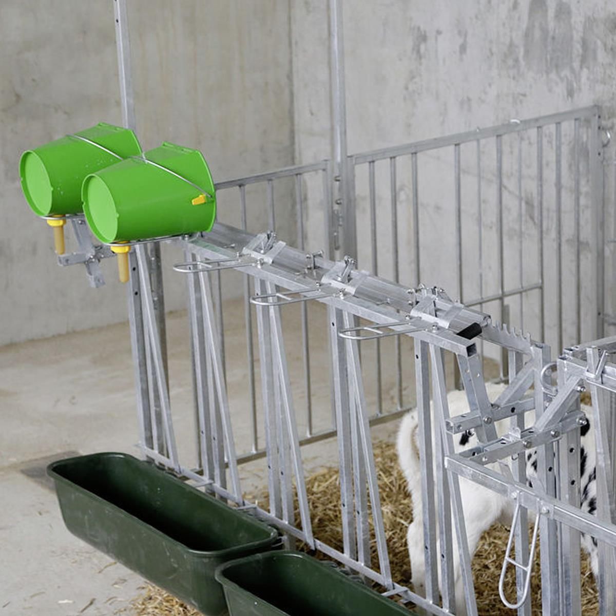 Das Kälberfressgitter bietet eine kostengünstige und tiergerechte Lösung für eine Gruppenhaltung ab 14 Tage bis ca 6 Monate. Fressgitter dienen zur Verhinderung, dass die Tiere sich beim Fressen gegenseitig verdrängen, und gibt Ihnen die Möglichkeit, die Kälber zu fixieren. Ob zum Fressen oder zum Ausmisten des Strohbereiches, mit den Fressgittern können die Kälber per Gruppeneinsperrung in den Ständen fixiert werden.