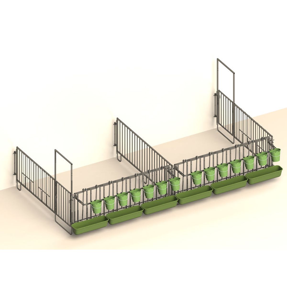 Modulare Kälberstall Aufstallung Zaunteil mit Tür + Fressplätze 6 Fressplätze, 285 cm