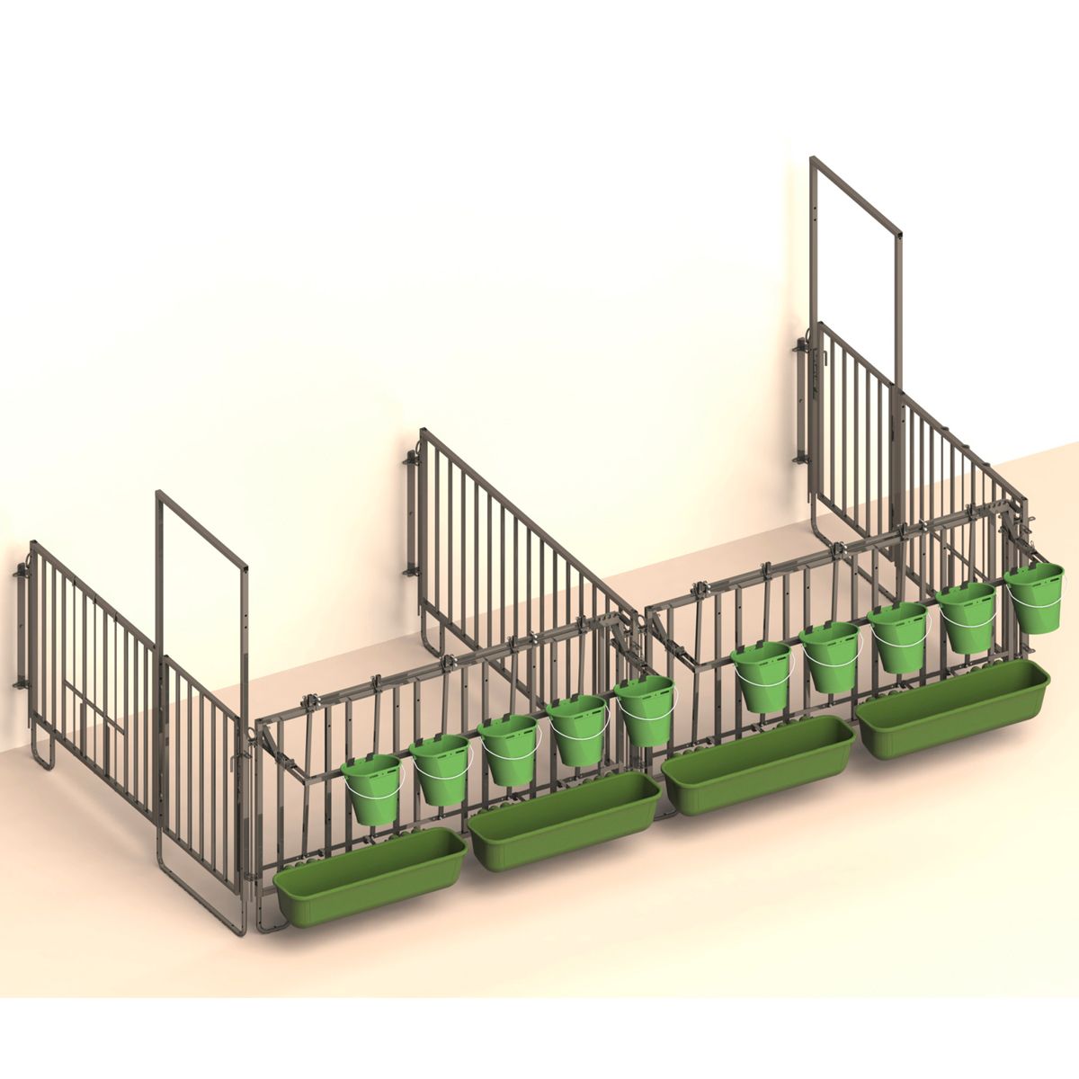 Modulare Kälberstall Aufstallung Zaunteil mit Tür + Fressplätze 3 Fressplätze, 215 cm