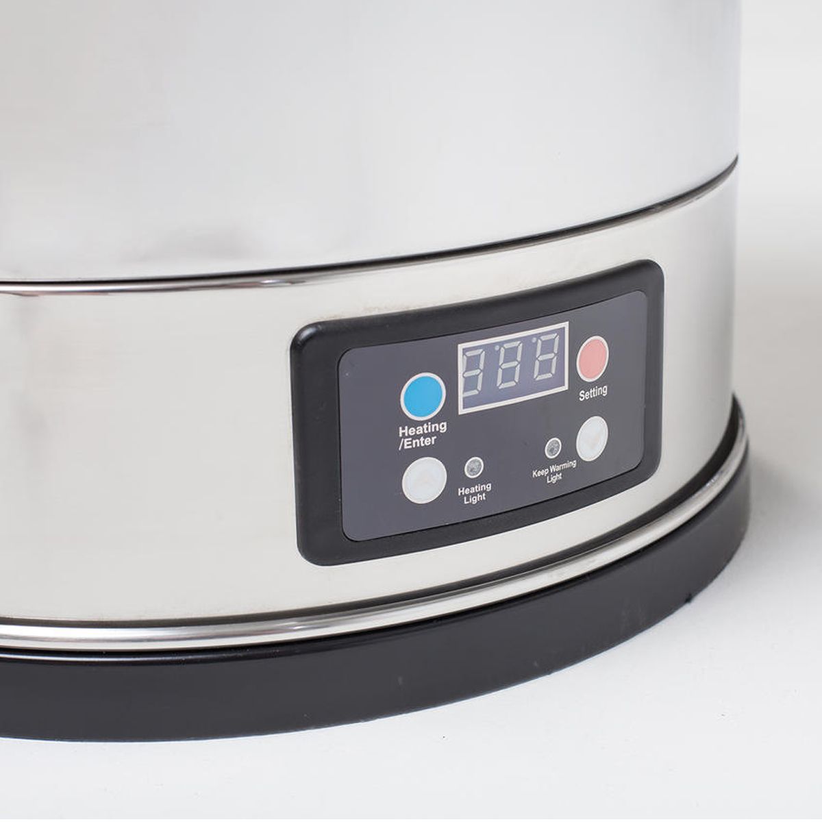 Die Bedienung des Milky Pasteurisators ist kinderleicht: Die Wassertemperatur (bis max. 100 °C) wird je nach gewünschtem Endprodukt eingestellt, gleichzeitig wird auf der elektronischen Steuerung die Produktionszeit angegeben. Dank eines 2,8 kW Heizelements wird Ihre Kuh-, Schaf- oder Ziegenmilch in ca. 1 ¼ Stunden von ca. 4 °C auf max. 90 °C keimfrei erhitzt. Der Außenkessel besteht aus einem Stück und besitzt eine spezielle Innenisolierung. Die besonders dünnen Wände und eine elektronische Heizungskontrolle sorgen mit dem neuen LE-Effekt (Low Energy Effekt) für eine enorme Energie- und Heizkostenersparnis. Frei nach dem Motto "klein aber fein" wurde der Mini Pasteurisator in Österreich sorgsam entwickelt, durch ständige Qualitätskontrollen wird eine bemerkenswert hohe Verarbeitungsqualität gewährleistet.