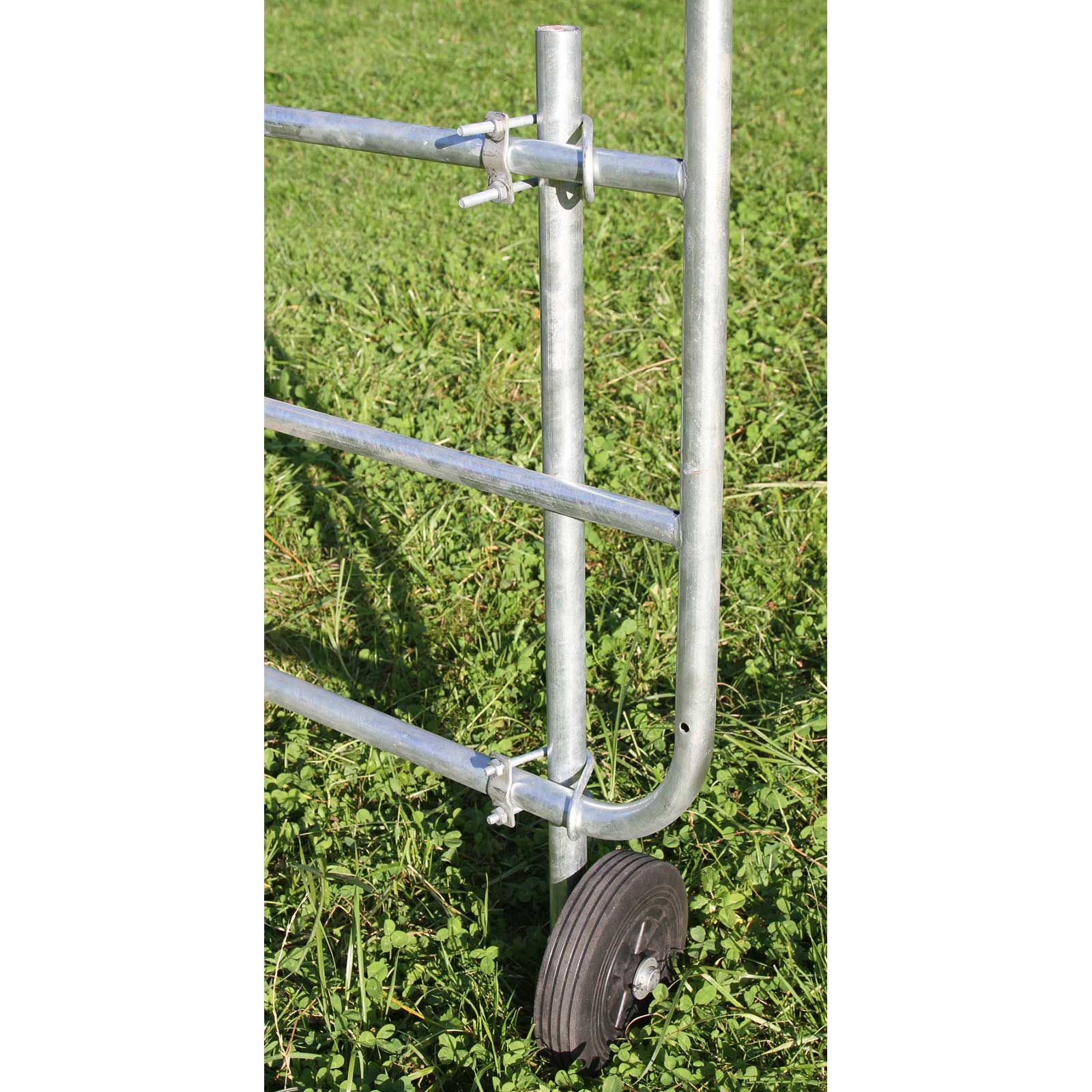 Durch das Stützrad werden besonders breite Weidezauntore gestützt und Weidetorpfosten entlastet. Das beugt Beschädigungen durch Überlastung vor. Das Weidetor Stützrad ist verzinkt und passend für alle Weidetore. Mit den mitgelieferten Montageteilen ist das Stützrad leicht zu montieren und höhenverstellbar. Das Vollgummi-Rad hat einen Durchmesser von 20 cm und ist äußerst widerstandsfähig.
