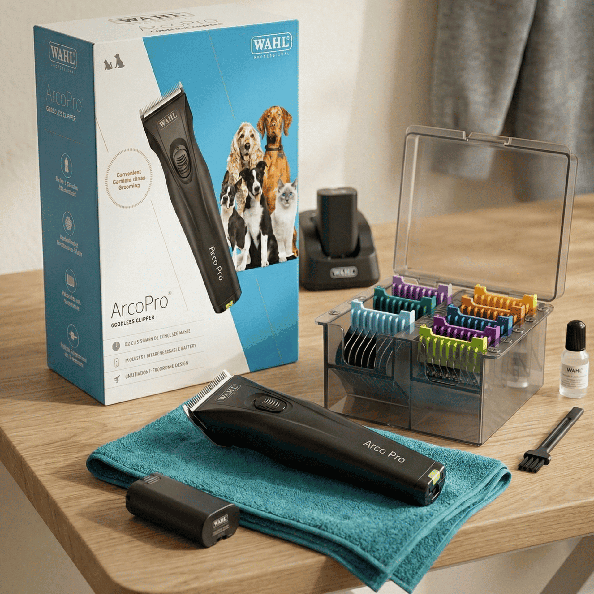 Die Wahl Arco Pro ist ein ergonomisches Grooming-Werkzeug für Haustiere, das stressfreies Grooming ermöglicht. Ihr präzisionsgeschliffenes Vollmetall-Schneide-Set sorgt für Flexibilität und Präzision und gleitet mühelos durch verschiedene Felltypen.