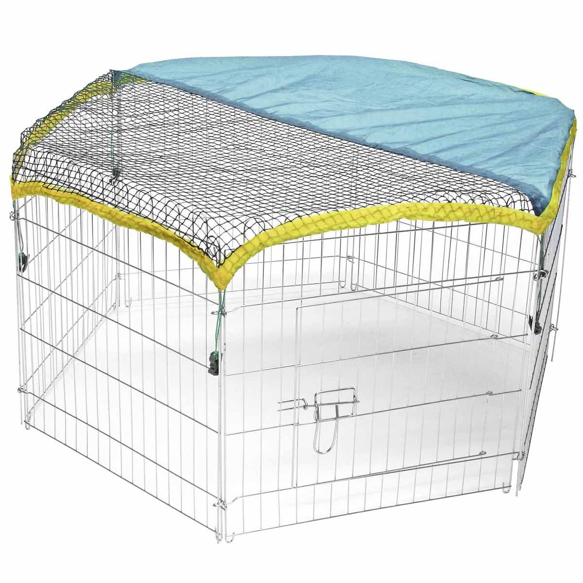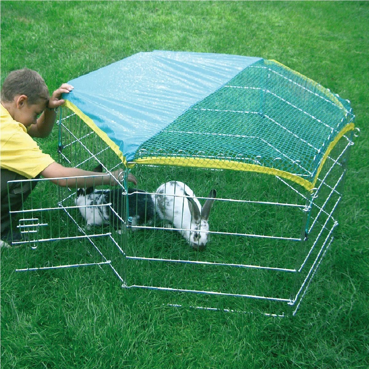 Das 6-eckige Freigehege bietet Ihren Kleintieren unbescherte Sommerfrische im Garten. Das Netz- / Sonnenschutz bewahrt Ihre Kleinen vor ungebeteten Gästen wie Katzen, Marder oder Greifvögel. Außerdem spendet es an heißen Tagen genügend Schatten. Die 6 Zaunelemente sind einfach und variabel aufstellbar und im Winter platzsparend aufzubewahren.