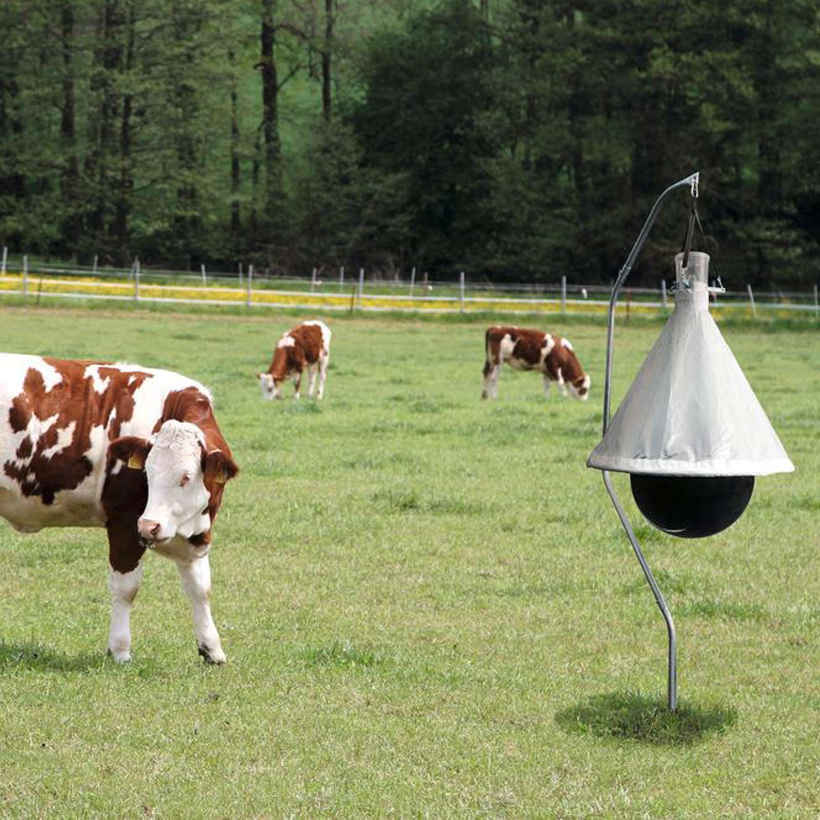 2. Stellen Sie Insektenfalle in der Flugbahn auf. Tendenziell näher an den Aufenthaltsorten von Mensch und Tier (Ställe, Gärten, usw.). Je nach Einzugsgebiet der Bremsen benötigen Sie mehrere Bremsenfallen.