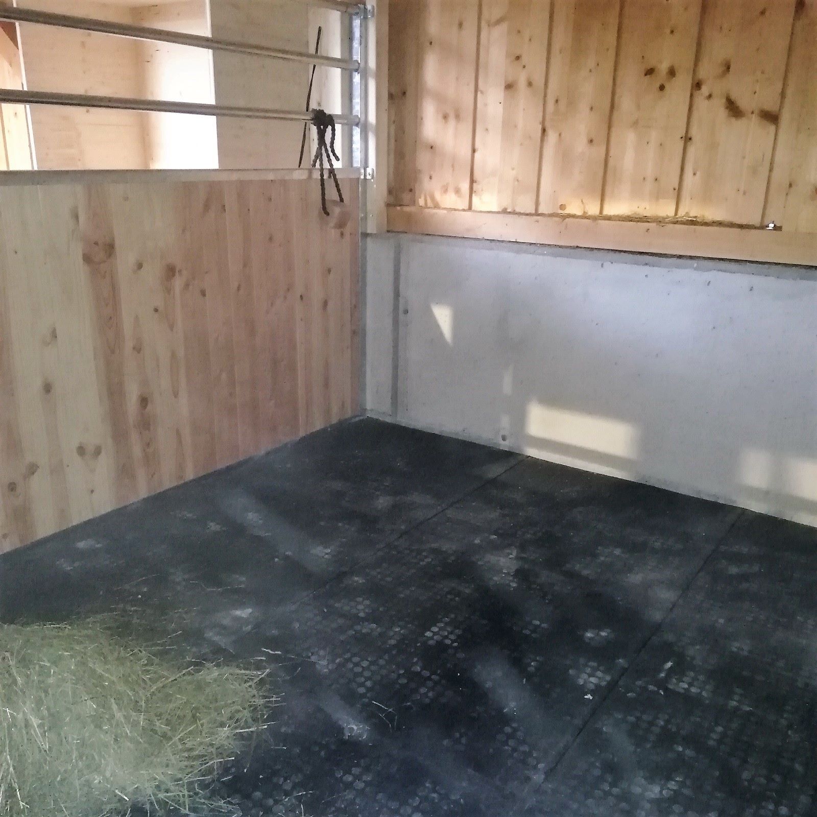 Mit einer Höhe von 3 cm bietet die praktische, quadratische Stall- und Boxenmatte dem Pferd einen besonderen Komfort beim Stehen und Liegen in der Pferdebox.