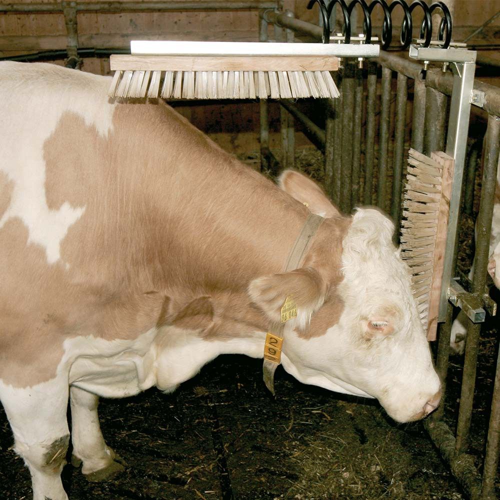 Kühe haben das Bedürfnis sich zu scheuern und zu kratzen. Dadurch reinigen sie sich selbst und befreien sich von Parasiten, Flechten und Milben. Das Bürsten stimuliert und regt den Blutkreislauf an. Der Einsatz einer Kuhbürste ist ein wesentlicher Beitrag zum Wohlergehen der Kuh und somit eine Grundvoraussetzung für eine hohe Milchleistung. Die Tiere werden ruhiger, ihr Wohlbefinden wird gesteigert.