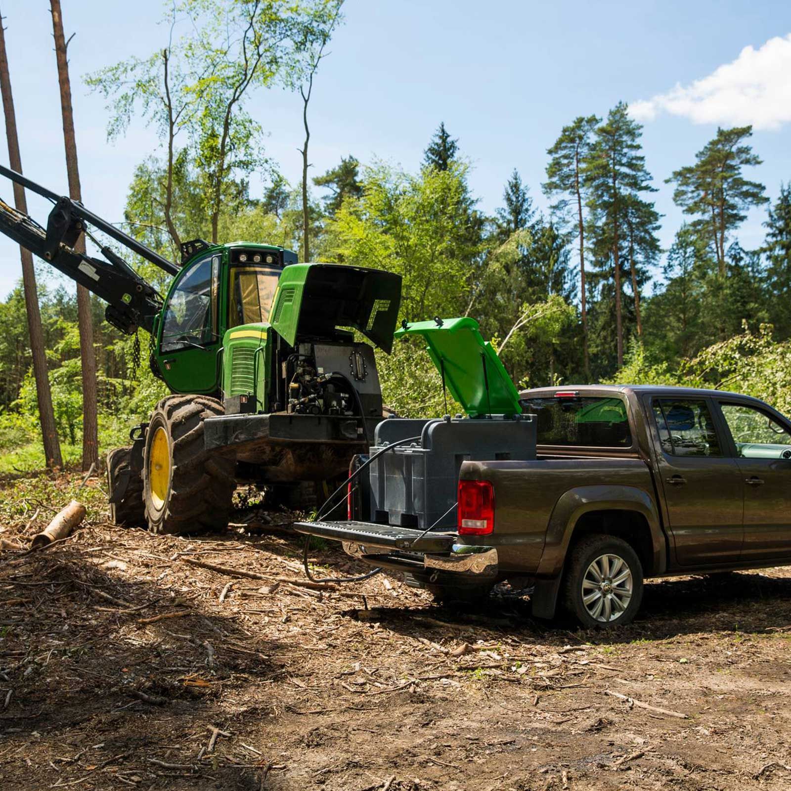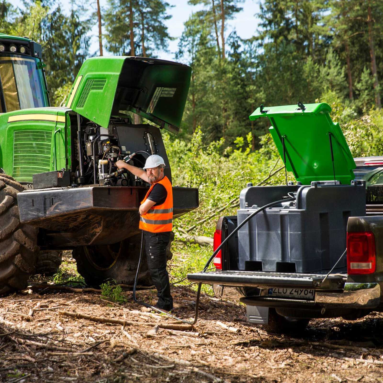 Ideal als mobile Tankstelle für Outdooreinsätze wie Wald-, Forst-, Bau- und anderen Arbeitseinsätzen, ohne dafür zu einer Tankstelle fahren zu müssen. Nutzfahrzeuge und anderen Arbeitsmaschinen ganz einfach überall betanken.