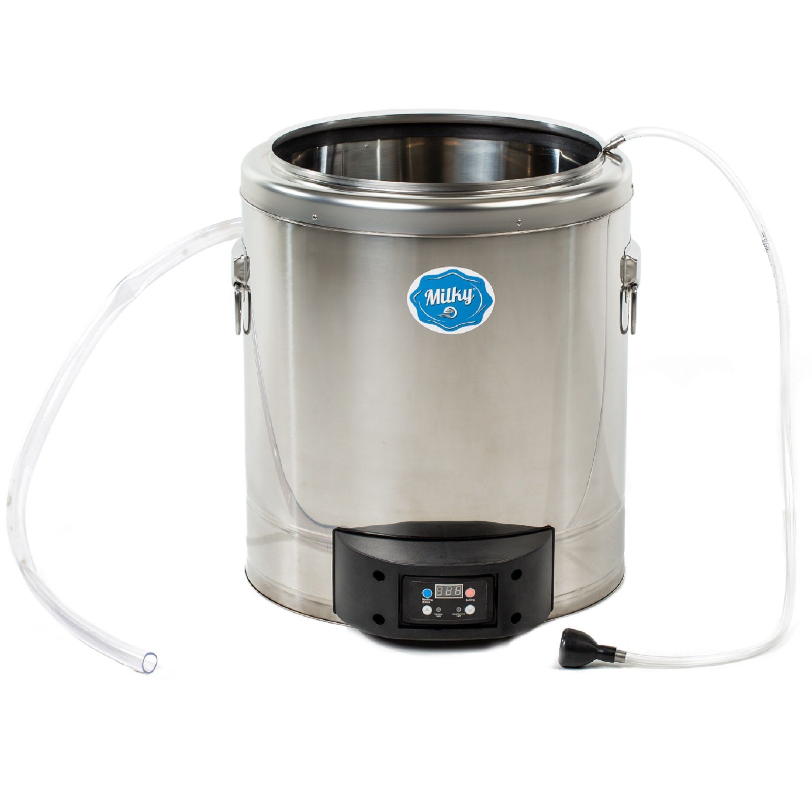Der Milky Midi Pasteurisator FJ 30 ist ein toller Begleiter für die Herstellung von selbstgemachtem, frischem Käse, Joghurt oder Rahmprodukte. Durch die Pasteurisation wird der Rahm zu Käse und Joghurt verarbeitet, auch für die Herstellung von Obst- & Fruchtsäften, Honigwachs oder als Kälbermilchwärmer bzw. für die Verflüssigung von Honig wird der FJ 30 sehr gerne verwendet. Der elektrische Pasteurisator mit 30 L Edelstahlkessel ist in privaten Haushalten, in kleinen professionellen Betrieben und in der Direktvermarktung ein beliebter Begleiter. Der Midi Pasteurisator wird in Österreich sorgsam entwickelt, durch ständige Qualitätskontrollen wird eine bemerkenswert hohe Verarbeitungsqualität gewährleistet.
