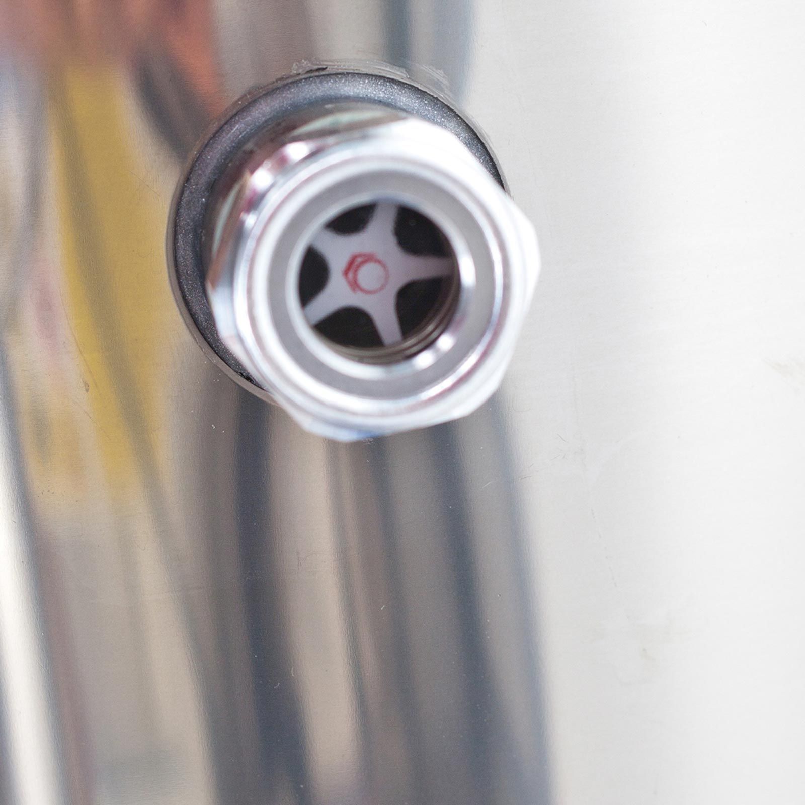 Das Besondere dieses dreiwandigen Edelstahlkessels mit 50 Litern Füllmenge liegt in der speziellen Bauweise: Der Außenkessel ist aus einem Stück gefertigt, das vermeidet Probleme, die durch Schweißnähte entstehen können. Die Isolationskammer hat 2,5 mm Wandstärke, bietet dadurch beste Isolierwerte und verhindert ein Erwärmen der Außenwand und damit verbundene Energieverluste. Die dünne 1,2 mm Wand zwischen zweiter und dritter Kammer ermöglicht einen sehr guten Wärmetransfer der Temperatur des Heizwassers zum Medium und erspart somit hohe Energie- und Heizkosten (Low Energy-Effekt). Zur optimalen Erhitzung sind nur rund 20 Liter Wasser notwendig. Die spezielle, elektronische Heizungskontrolle sorgt dafür, dass die Heizwassertemperatur nur max. 15 °C höher ist als die Mediumtemperatur. Aus diesem Grund beträgt die Abweichung zwischen Display und Mediumtemperatur max. +/- 1 °C, das spart ebenfalls die Energie- und Heizkosten.