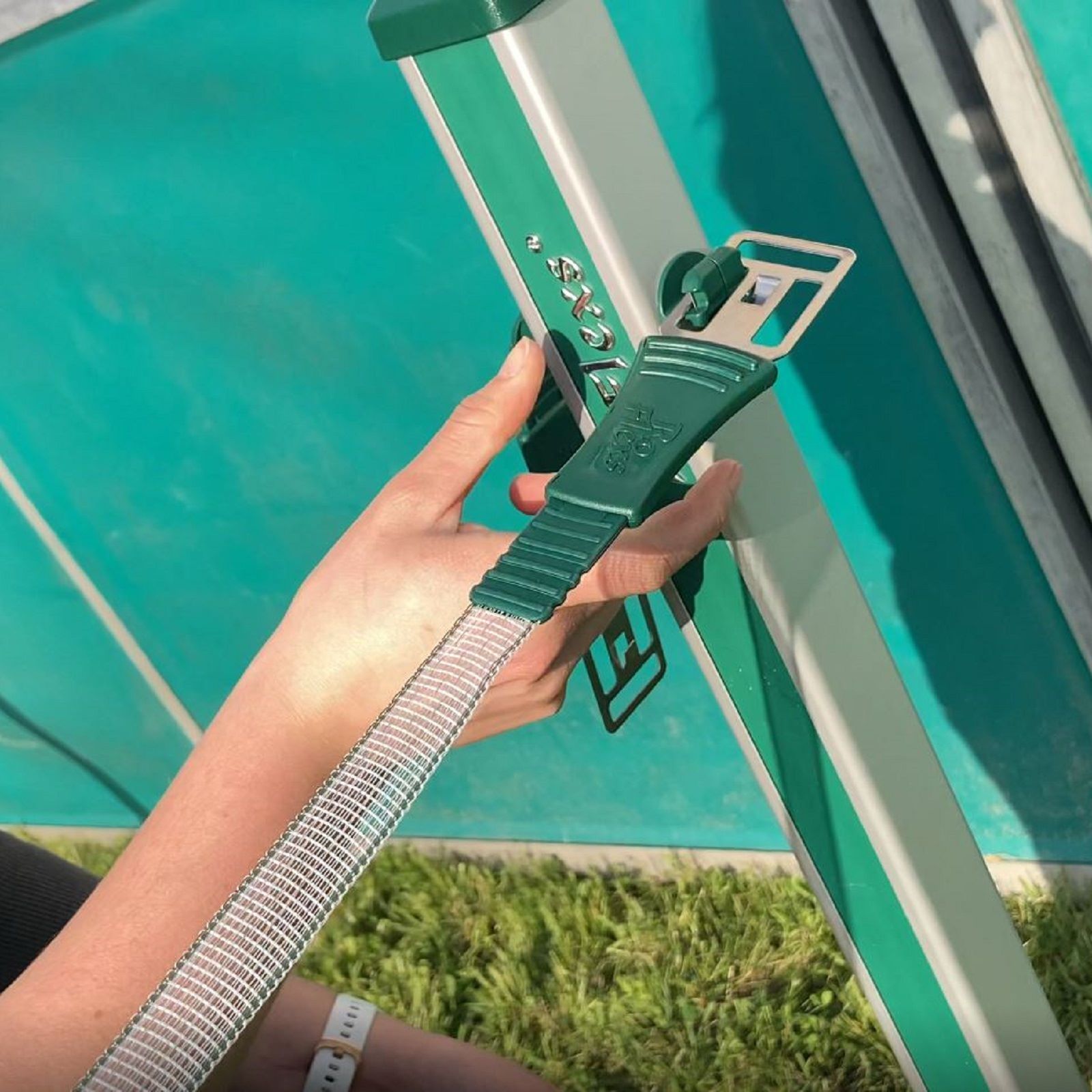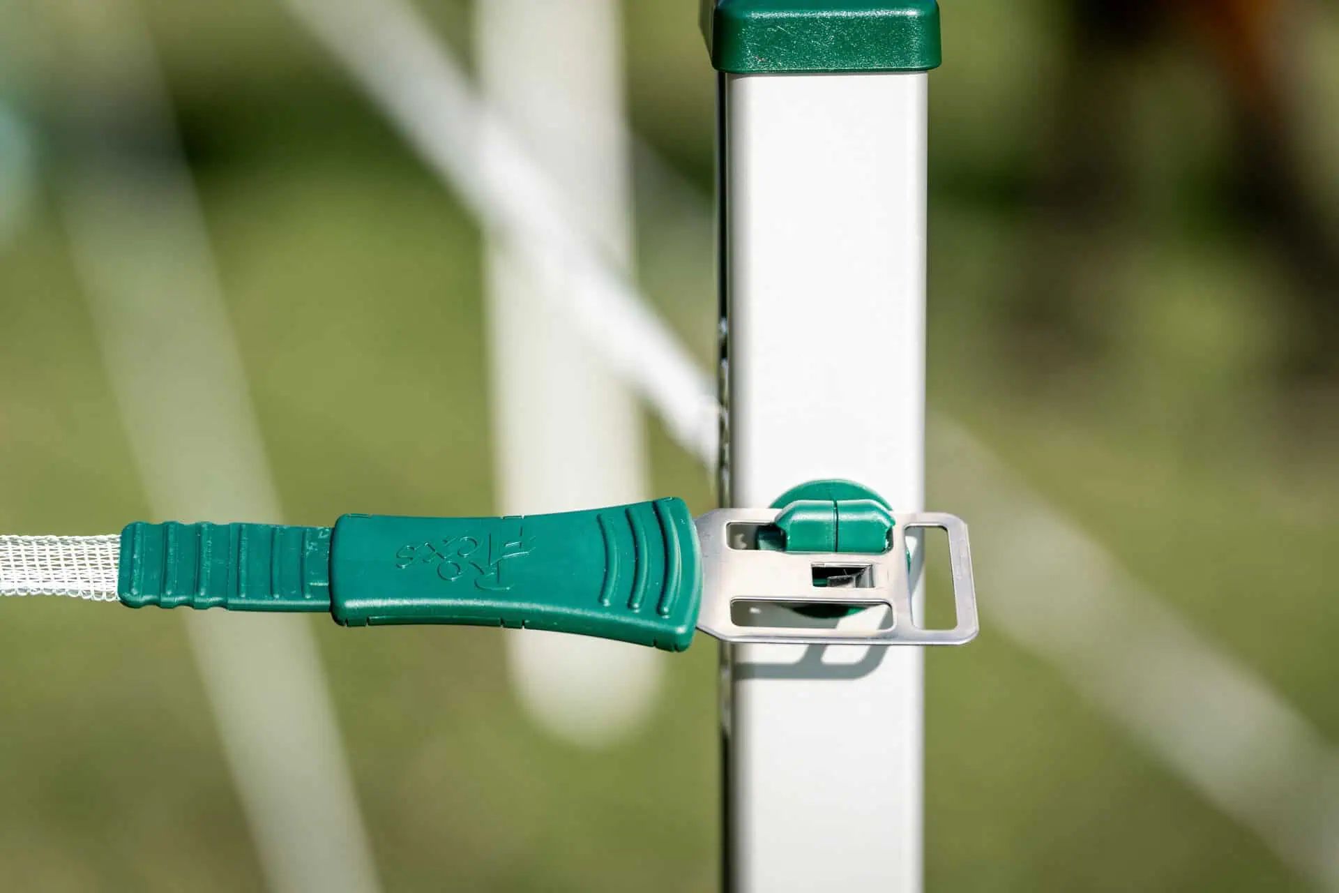 Das sichere Premium Zaunsystem von RoFlexs ist mit einem gut sichtbaren 20 mm breiten Band, einer bandschonenden Selbstaufwicklung und einer internen Durchleitung der Hütespannung ausgestattet. Durch das kraftvolle Aufrollsystem mit verstärktem, veredelten Aluminiumprofil (eloxiert) und einem stabilen, verzinkten Erdspieß aus Stahl ist das Zaunsystem absolut robust. Das Zaunband wie auch die schlagzähen High-End Kunststoffteile sind UV-stabil. Zudem gewährt der Hersteller 2 Jahre Garantie und zusätzlich 5 Jahre Garantie auf die Bandeinzugsfedern.