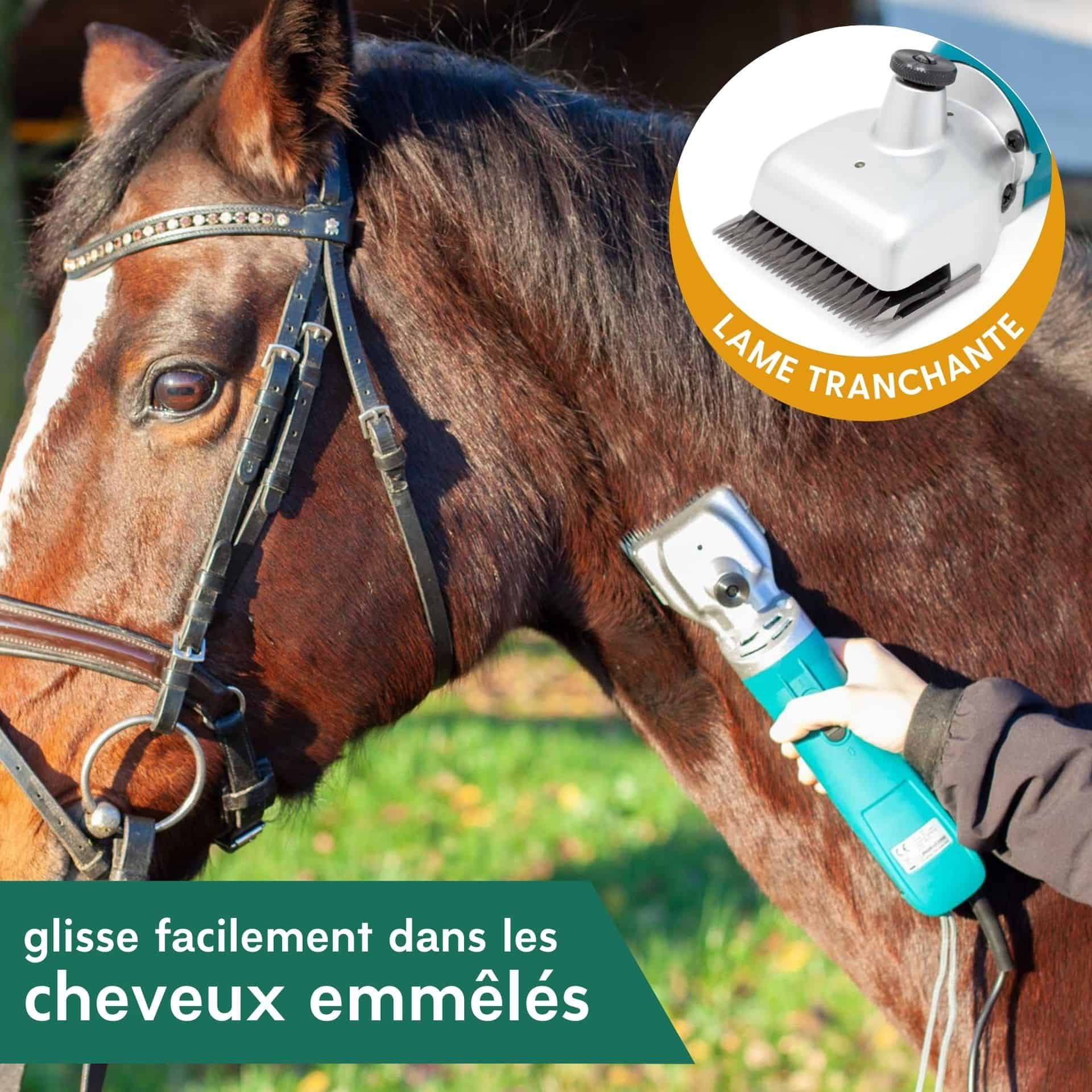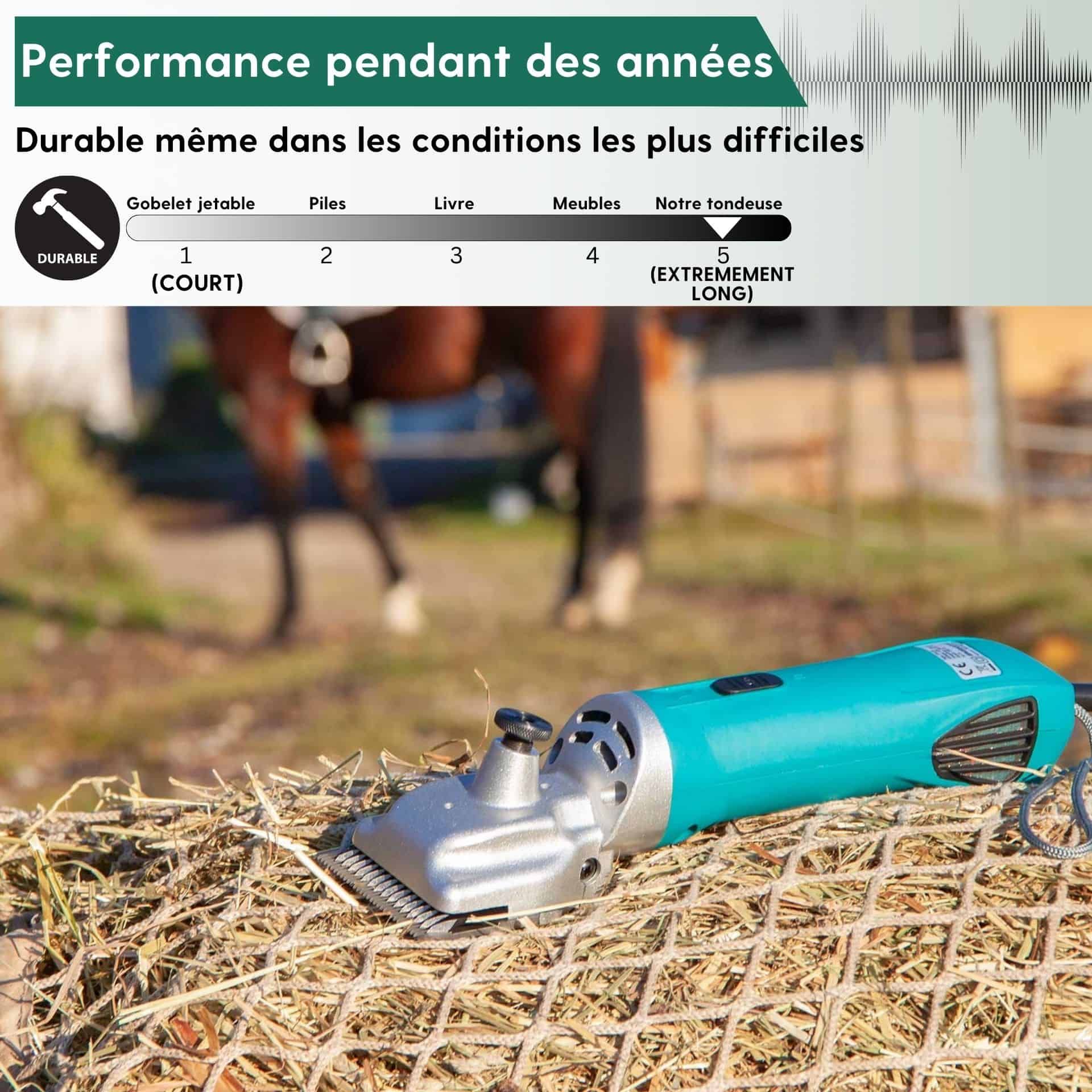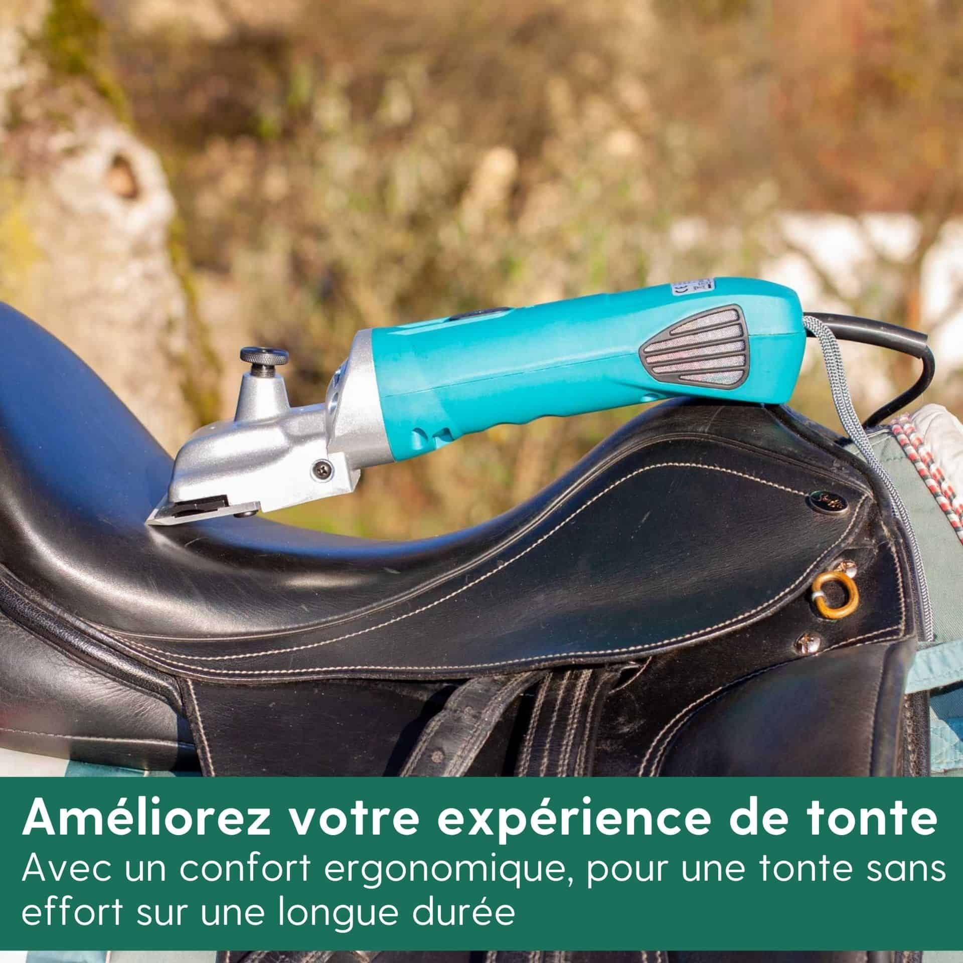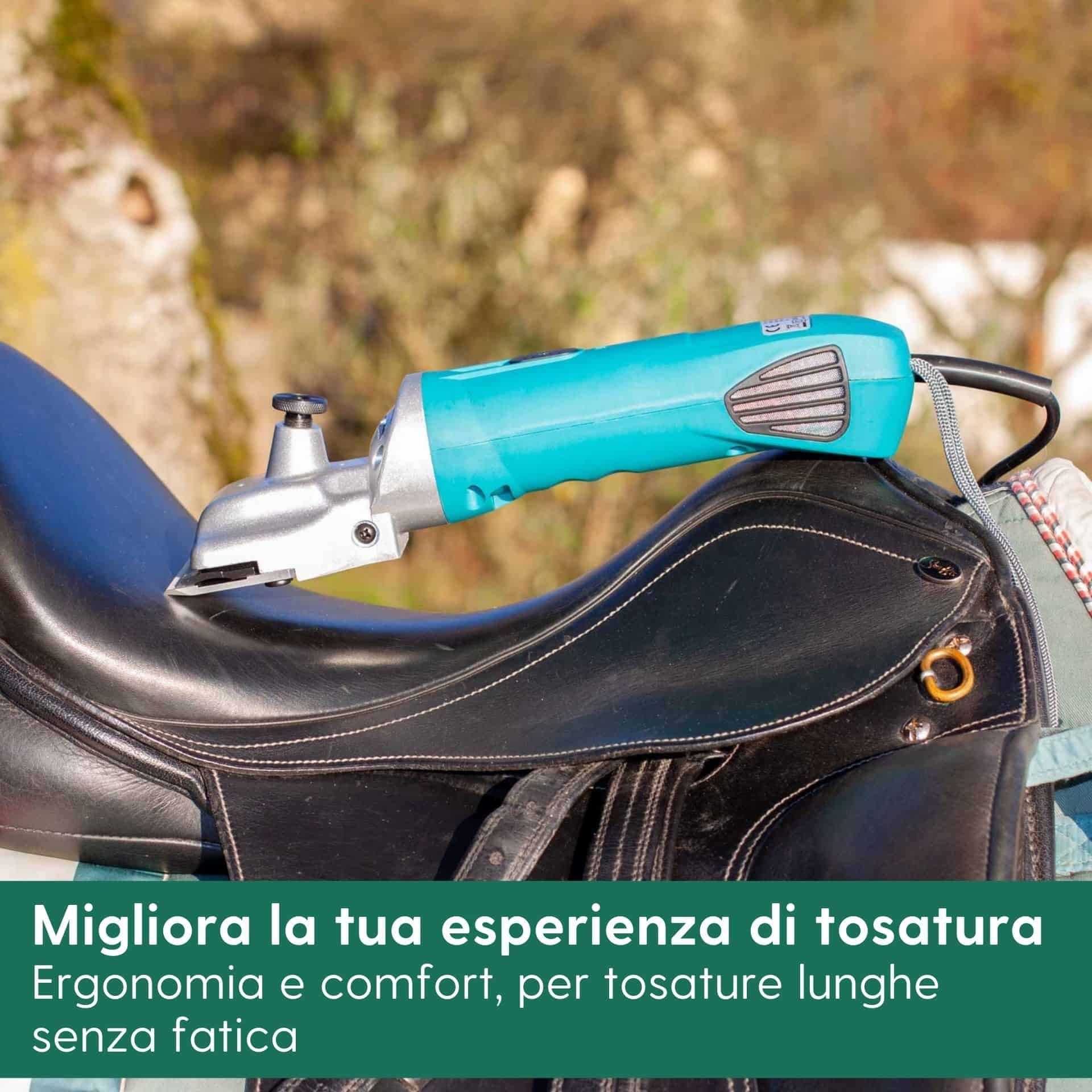 Die Rinder- und Pferdeschermaschine wird mit Netzstrom betrieben und bietet dank einem 3 Meter langen Netzkabel genügend Bewegungsraum. Sie ist ergonomisch geformt und liegt somit sicher in der Hand. Das robuste Gehäuse verspricht eine lange Lebensdauer und optimale Arbeitsbedingungen.