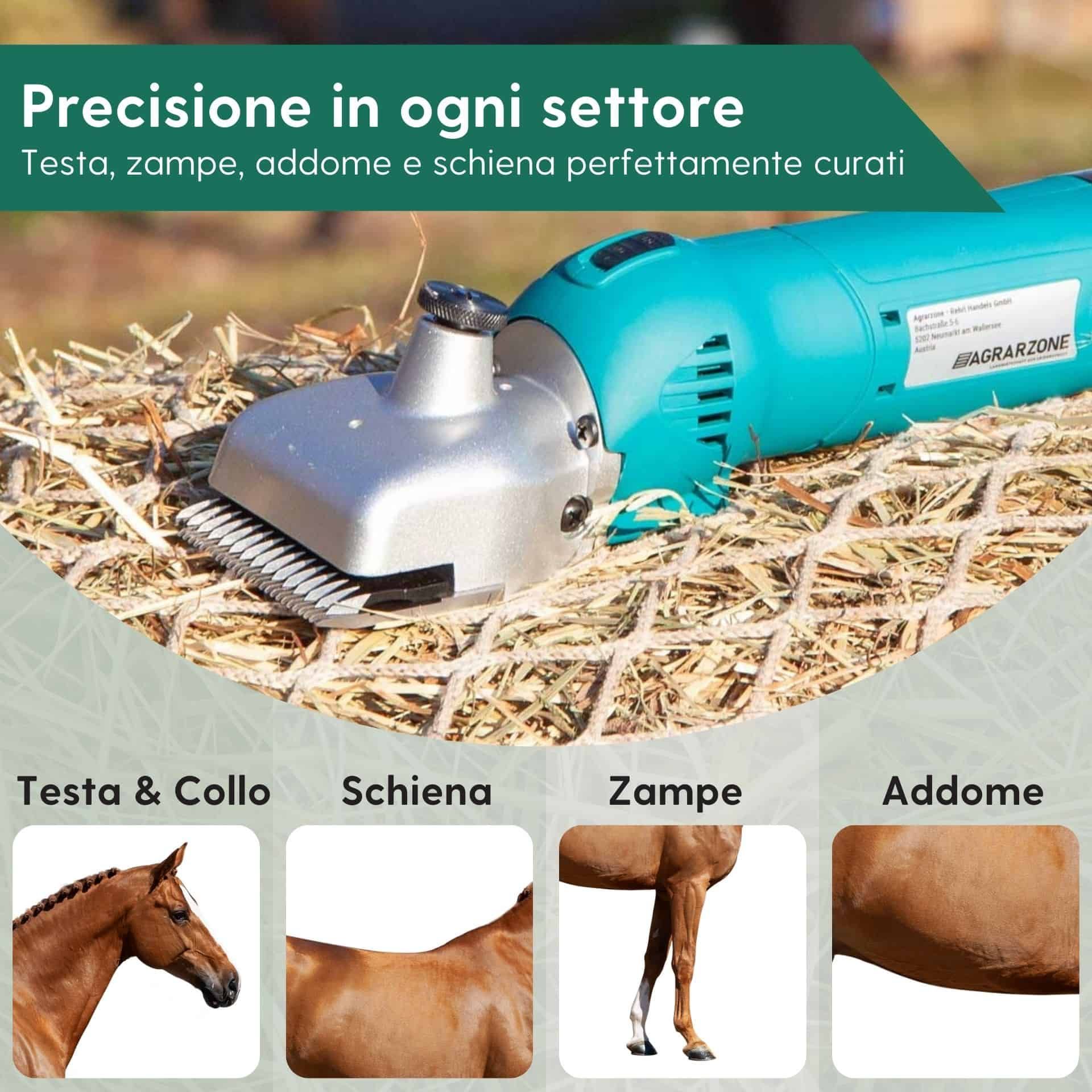 Mit der neuen Agrarzone Schermaschine PowerCut können Sie Pferde oder Rinder präzise und schnell scheren. Der leistungsstarke 200 Watt Motor leistet mit 3000 Doppelhüben pro Minute eine außerordentlich hohe Durchsetzungskraft.