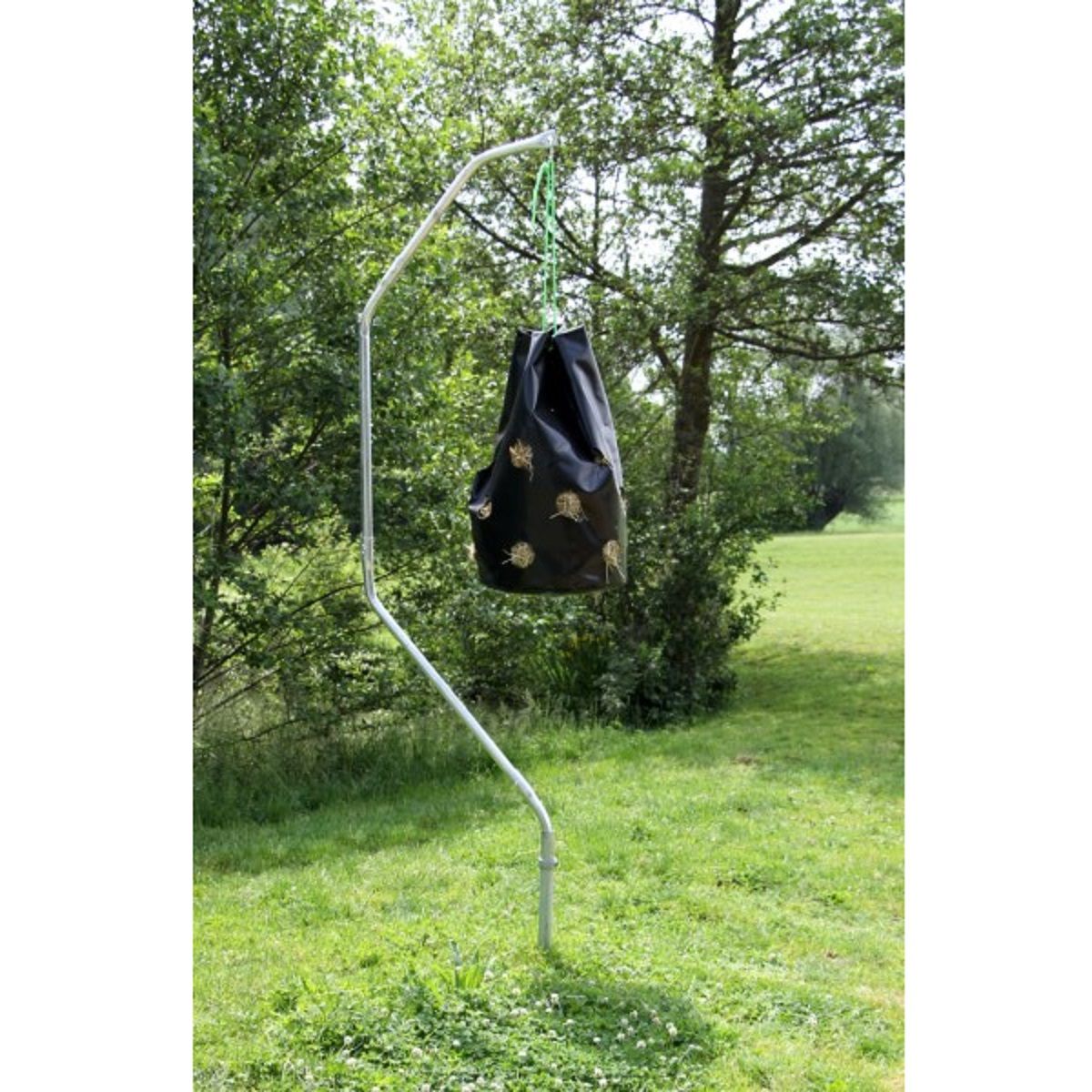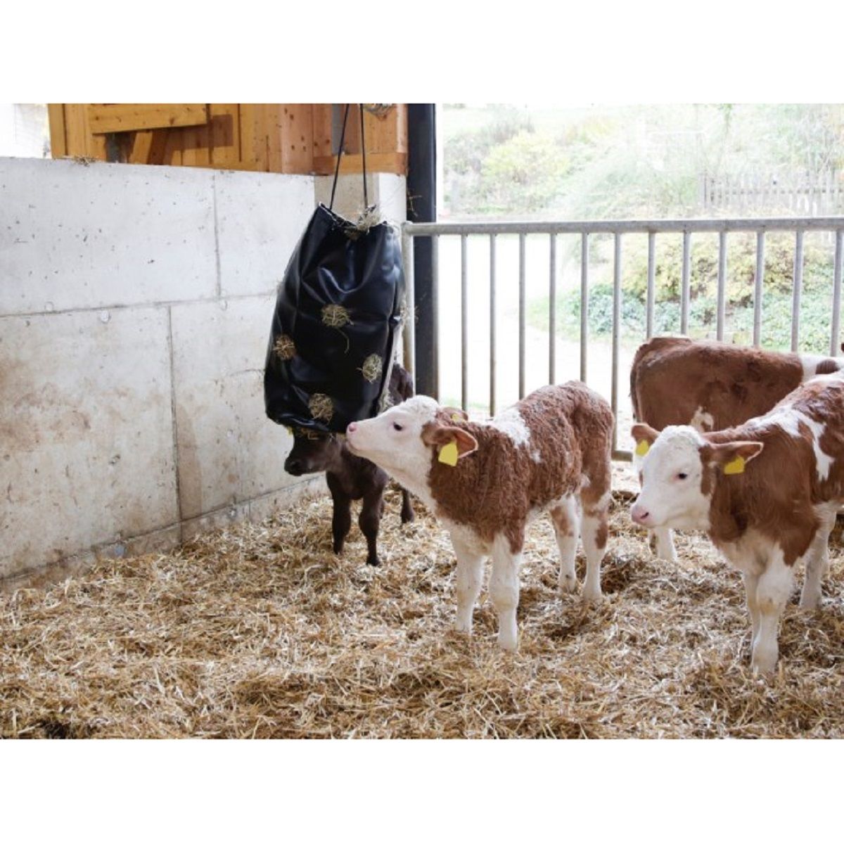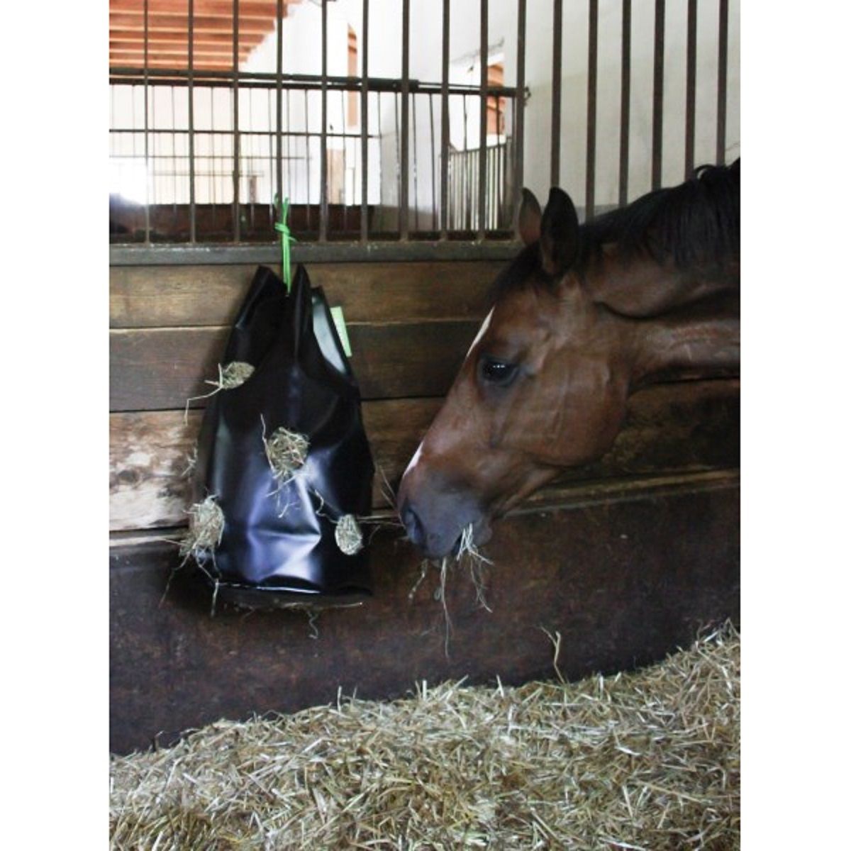 Der HayBag von Kerbl vereint viele Vorteile in einem Produkt. Im Gegensatz zur Heufütterung am Boden wird der Futterverlust um ca. 15% verringert und gleichzeitig das langsame, pferdegerechte Füttern gefördert. Der HayBag Heusack ist im Gegensatz zu Heunetzen sehr leicht zu befüllen und einfach zu reinigen. Durch die glatte Oberfläche wird das Verletzungsrisiko verringert. Der HayBag ist vielseitig in der Pferdebox, auf der Weide, im Anhänger und auf Turnieren einsetzbar. Der Lochdurchmesser beträgt ca. 8 cm.