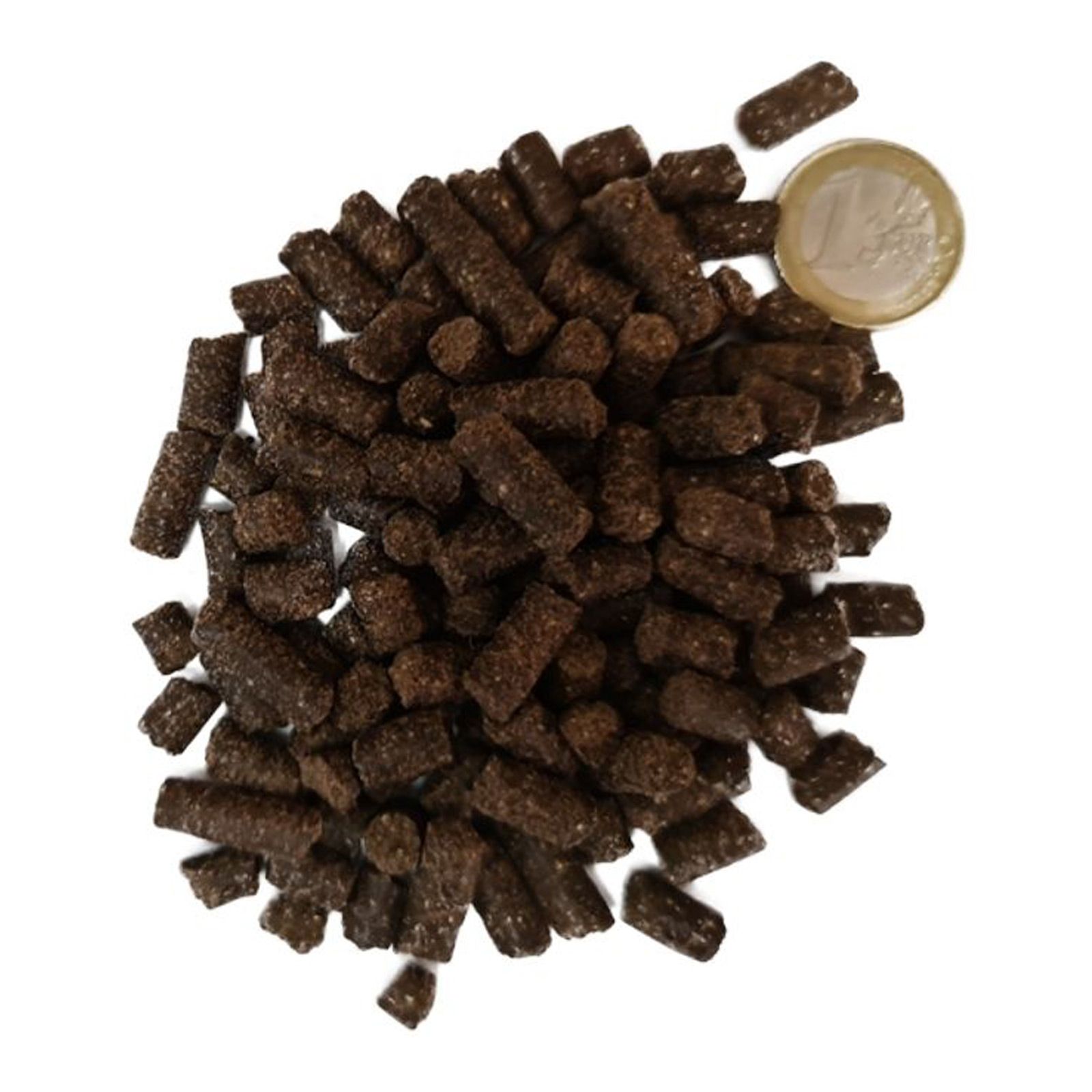 Analytische Bestandteile: Rohprotein 28%; Fettgehalt 16%; Rohfaser 2,50%; Rohasche 6%; Calcium 1,40%; Phosphor 0,90%; Selen 0,50 mg / kg; Omega 3 0,30%; Omega 6 3,00%