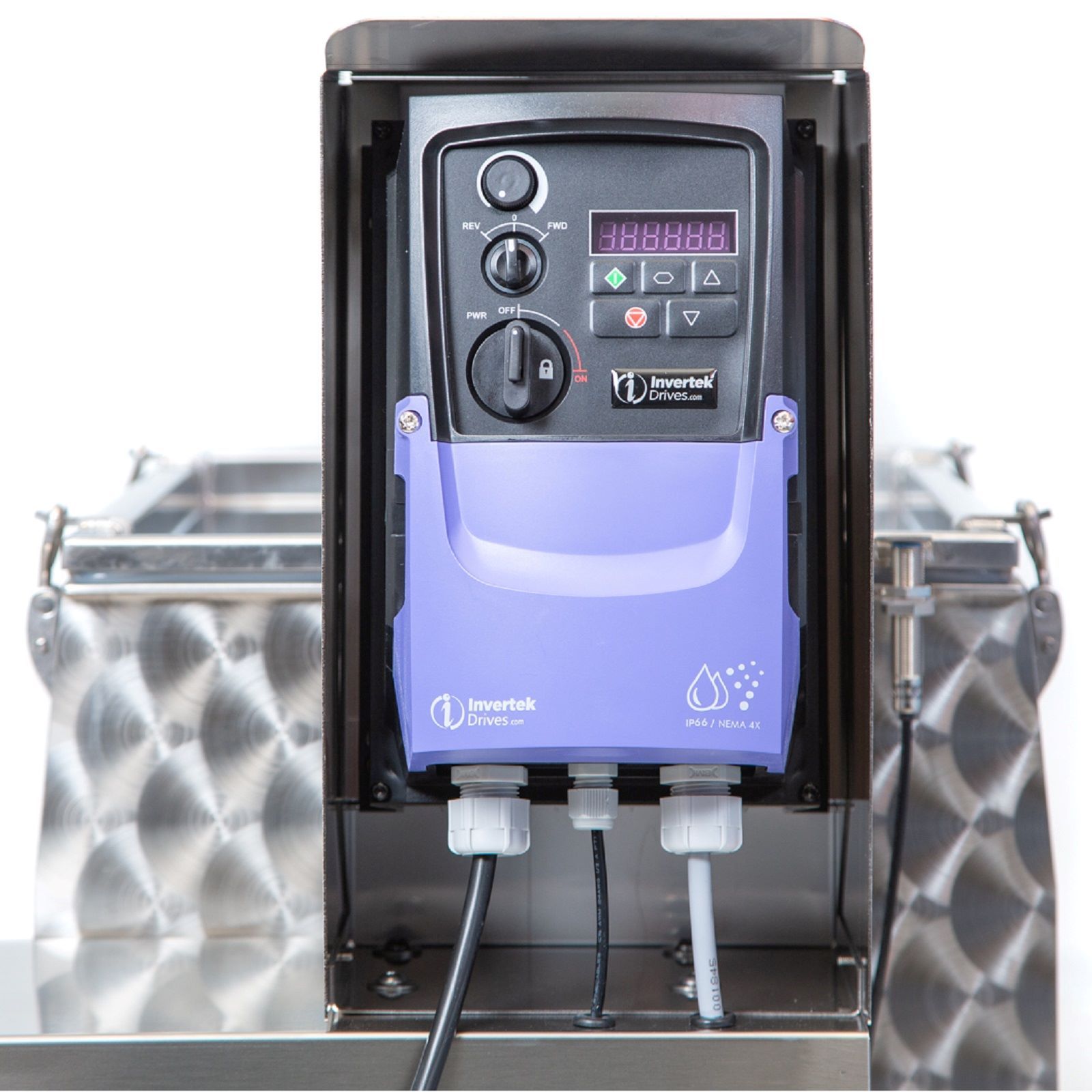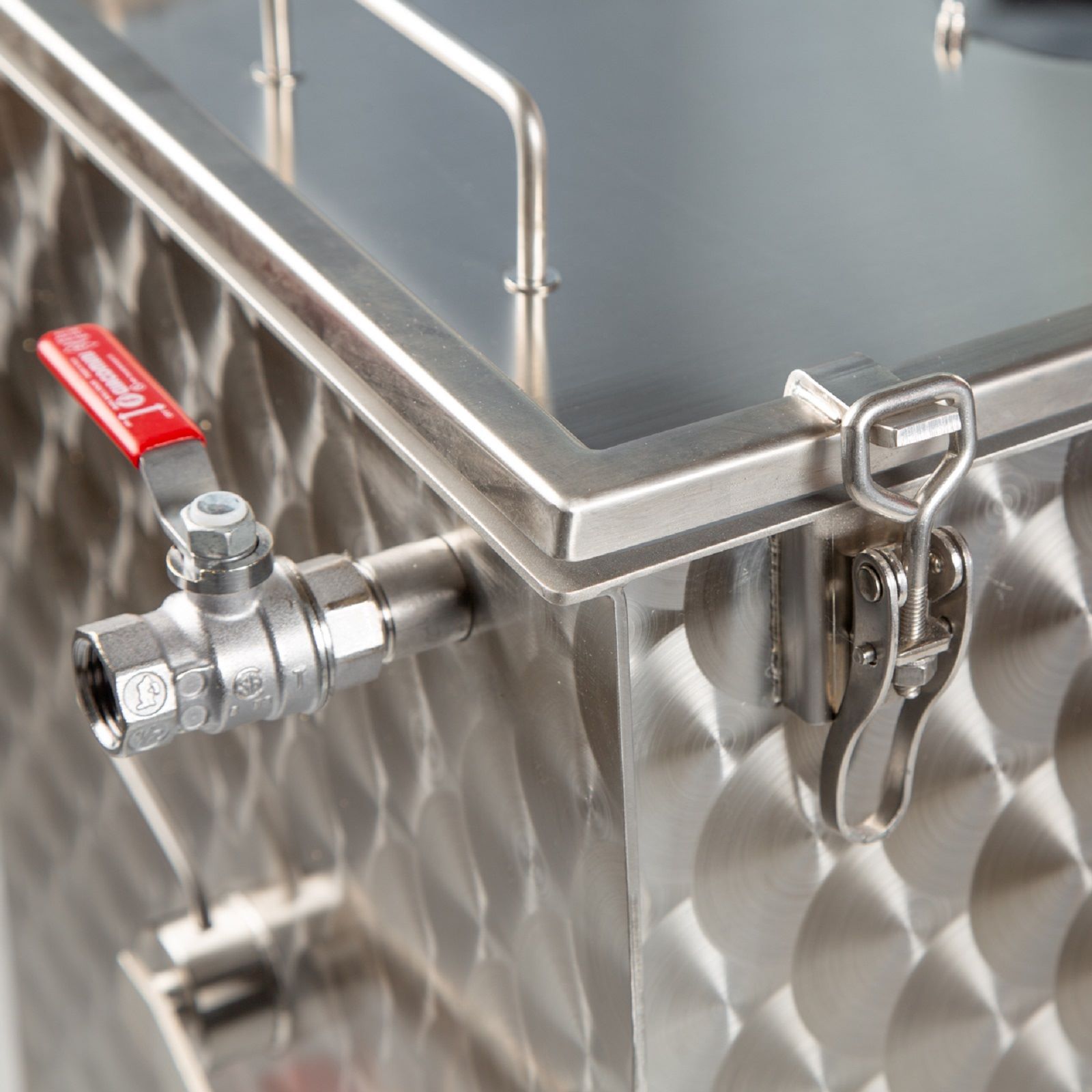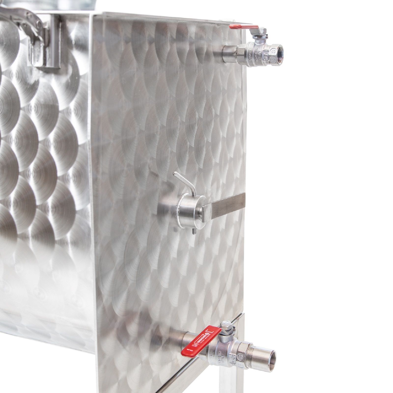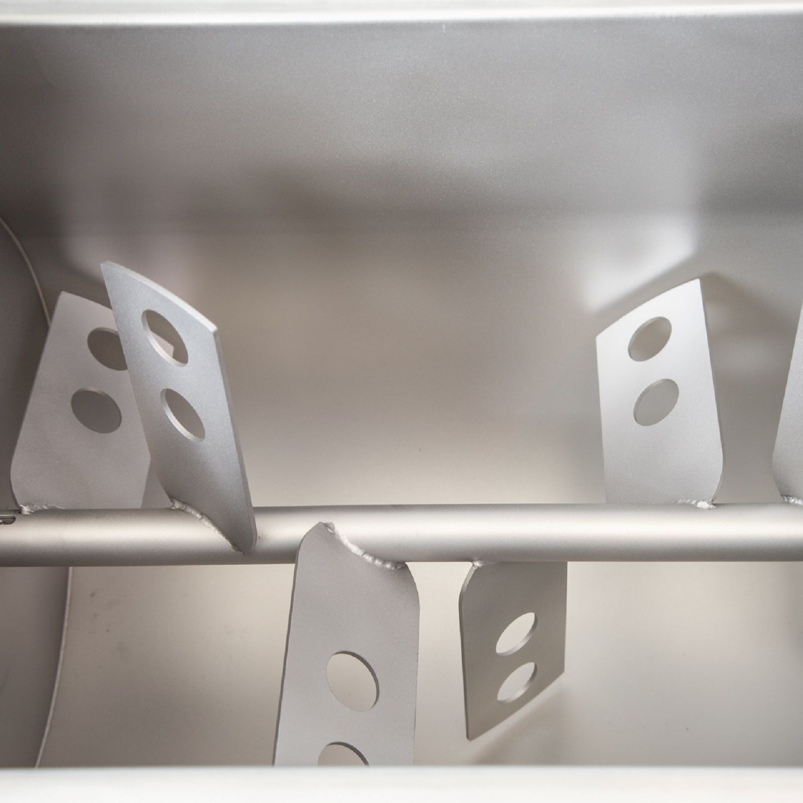 Das Rührwerk der Buttermaschine, der Buttertank und der Ablasshahn bestehen aus lebensmittelechtem Edelstahl. Das Material macht die Maschine pflegeleicht und hygienisch.