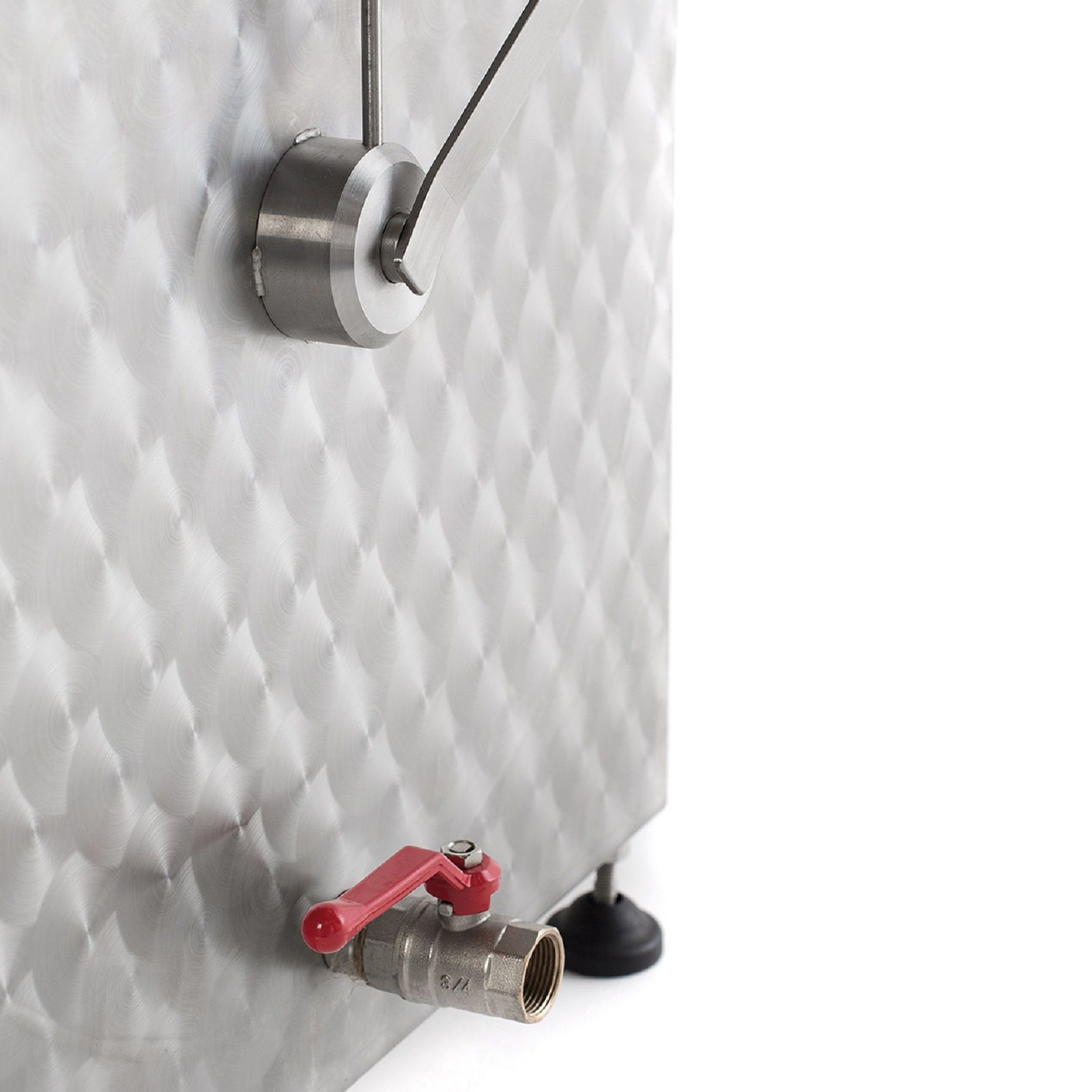 Der 100 Liter Edelstahl - Rahmbehälter wird für den Vorgang mit 15 bis 50 Liter Rahm, maximal jedoch bis zur Rührwerk Achse, gefüllt. Je nach Rahmtemperatur und Fettgehalt benötigt diese Buttermaschine für einen Butterungsvorgang 20 und 40 Minuten. Durch das praktische Sichtfenster ist das Beobachten des Fortschritts kein Problem. Der automatische Sicherheits-STOP verhindert Unfälle, wenn während des Betriebs der Deckel geöffnet wird. Der ausgeprochen leistungsstarke 1100W, 230V Motor erlaubt die Einstellung von kürzeren oder längeren Butterungszeiten über die Geschwindigkeitsregulierung. Die Buttermilch wird am Ende mit dem separaten Ablasshahn auf einfache Weise abgelassen, danach wird die Butter gewaschen und das hochqualitatives Produkt ist fertig.