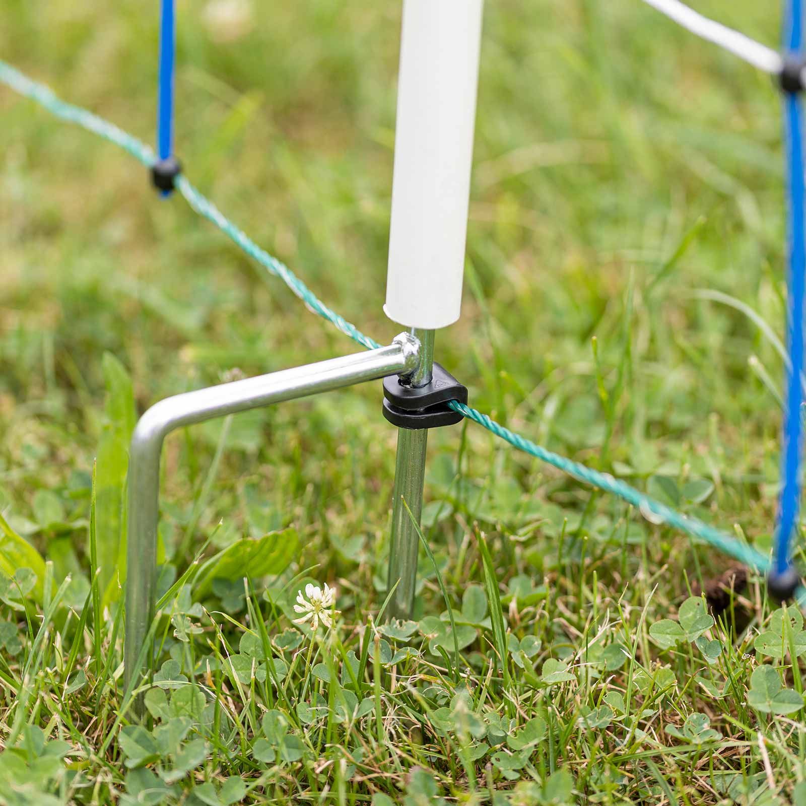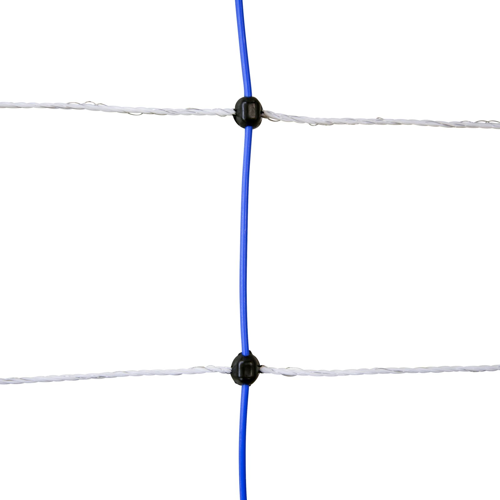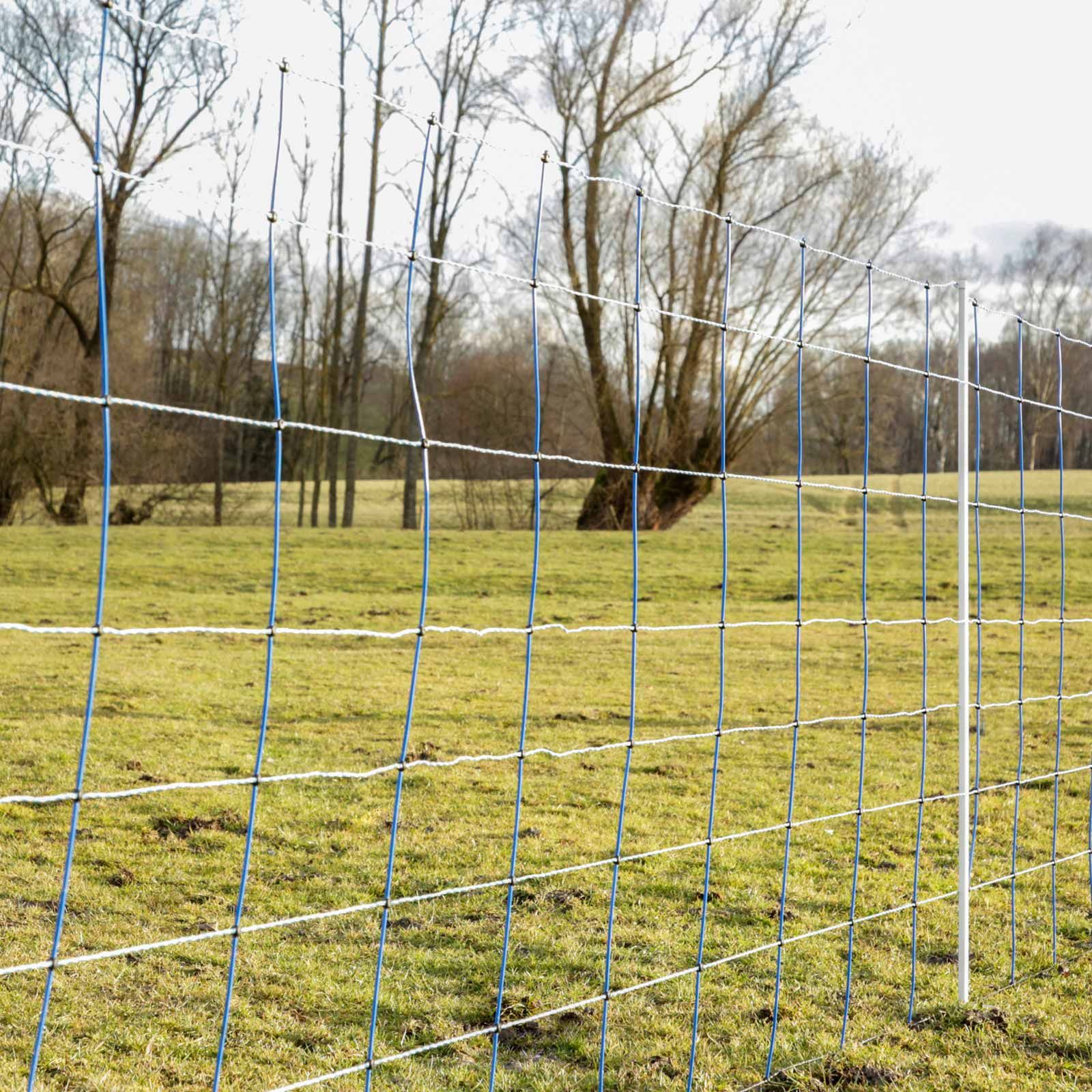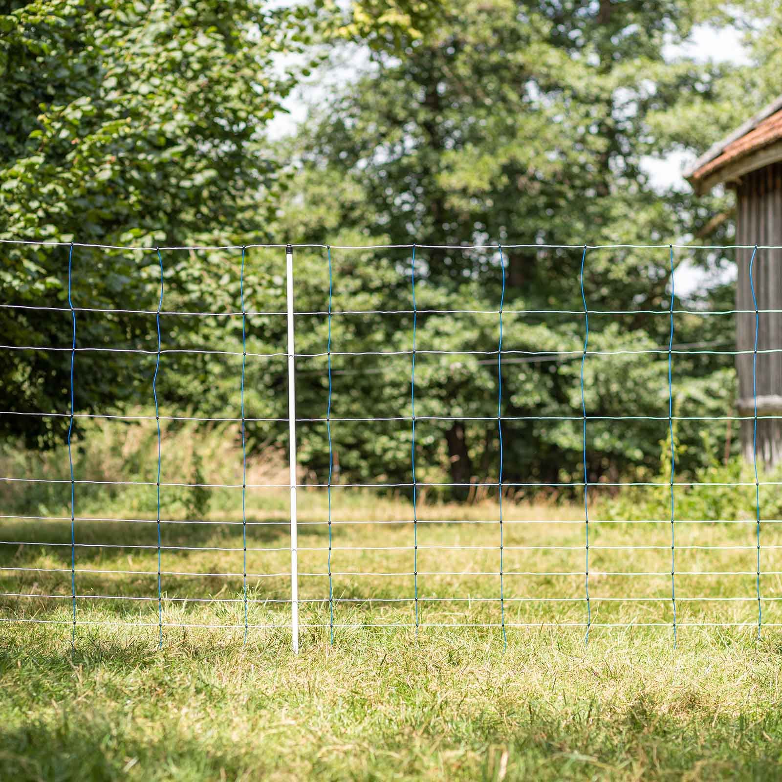 Dieses komplett neue Modell aus der TitanNet Serie bietet den besten Schutz vor dem Eindringen von Wildtieren. Ein Überspringen dieses extra hohen Netzes ist quasi unmöglich. Aufgrund der maximalen Höhe von 145 cm über Grund eignet sich dieses Netz ebenso als Hüteschutz für Pferde, Ponys, Esel, Ziegen, Schafe oder Alpakas. Die 15 extra starken PVC-Pfähle mit einem Durchmesser von 19 mm und verzinkter Doppelspitze bieten einen sicheren und festen Stand. Die seit Jahren bewährten Vertikalstreben alle 30 cm sorgen für Stabilität und eine optimale Geländeanpassung selbst in hügeligem und unebenem Terrain. Die Knotenpunkte des Wildnetzes sind sehr fest verschweißt, das verhindert ein Durchhängen und gewährleistet eine lange Haltbarkeit. Integrierte Kopfisolatoren und Bodenstopper machen ein selbständiges Lösen der Litze fast unmöglich. Die verstärkte, stromführende Oberlitze erhöht die Leitfähigkeit durch die Verwendung von 5 Edelstahlleiter und eines verzinnten Kupferleiters. Bei schwierigen Bodenverhältnissen kann optional eine verstärkte Bodenlitze zur Erdung über die gesamte Netzlänge angeschlossen werden, wie es z.B. bei sehr sandigen oder erdigen Böden der Fall ist.