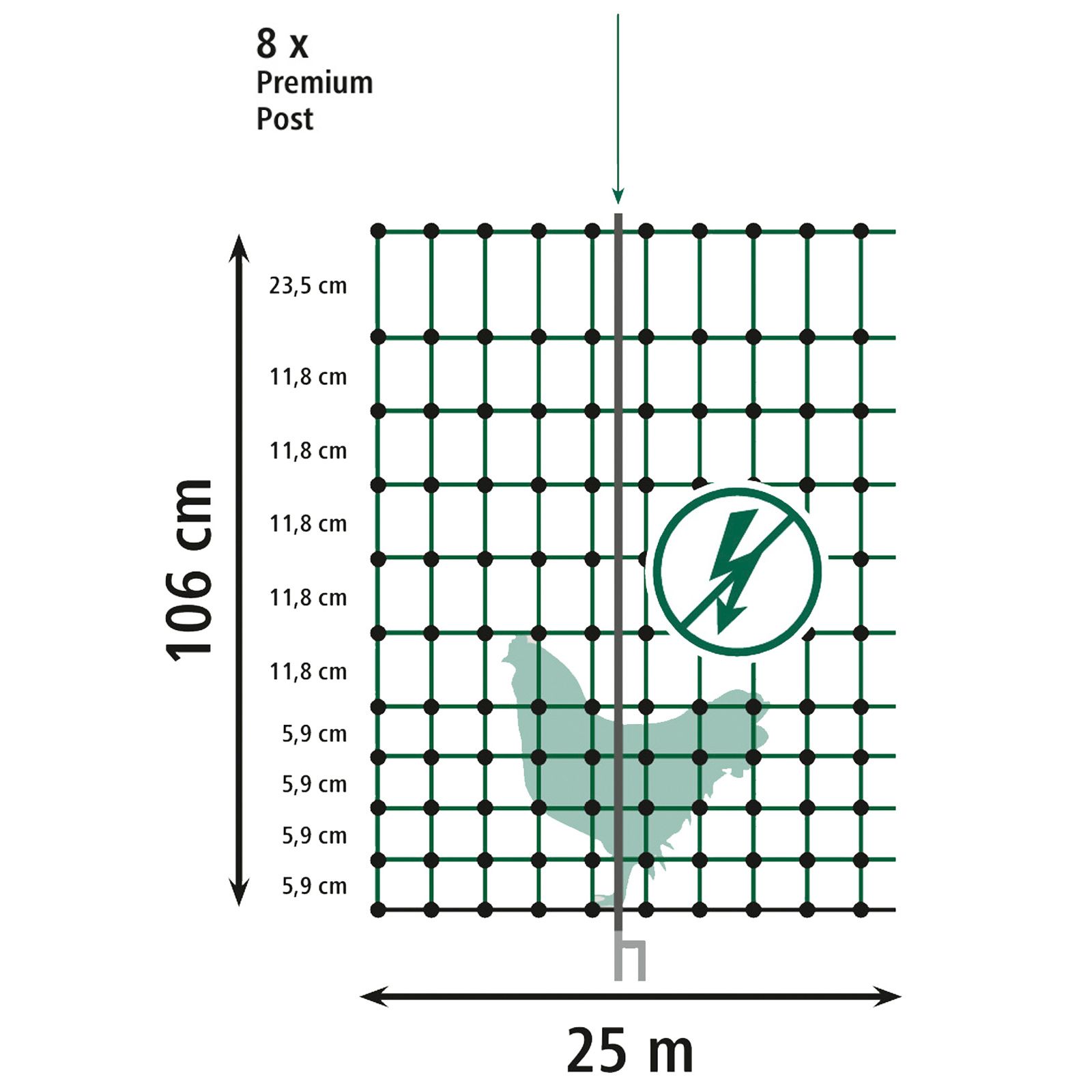 Ako Geflügelnetz Premium Pfahl ohne Strom, Doppelspitze, grün 25 m x 106 cm