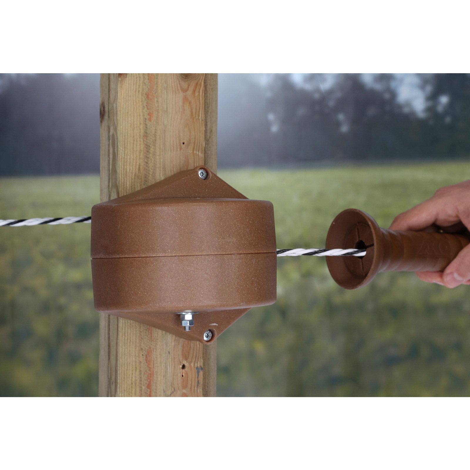 Hochwertiges Leitermaterial mit unseren bewährten TriCOND Drähten sorgt für eine durchgehend optimale Leitfähigkeit. Erhältlich ist das Flexigate Torgriff-System mit 40 mm Breitband oder 6 mm Seil. Die Ausrichtung des 40 mm Breitbandes lässt sich um 90 Grad im Torgriff drehen und kann damit individuell an die Einhängerichtung des Torgriffs angepasst werden. Das Breitband ist immer stehend und wird somit besser wahrgenommen. Eine integrierte Rückzugsbremse sorgt für ein kontrolliertes Einziehen des Leitermaterials und beugt Verletzungen sowie Beschädigungen vor. Das im Lieferumfang enthaltene Anschlusskabel ermöglicht eine optimale Kontaktierung und durchgehende Elektrifizierung des Tors. Eine beidseitige Montage am Pfahl (nach links oder rechts öffnend) ist mittels beiliegender Holzschrauben schnell und leicht erledigt. Selbstverständlich wird auch beim Verpackungsmaterial ein hoher Stellenwert auf Nachhaltigkeit gelegt.