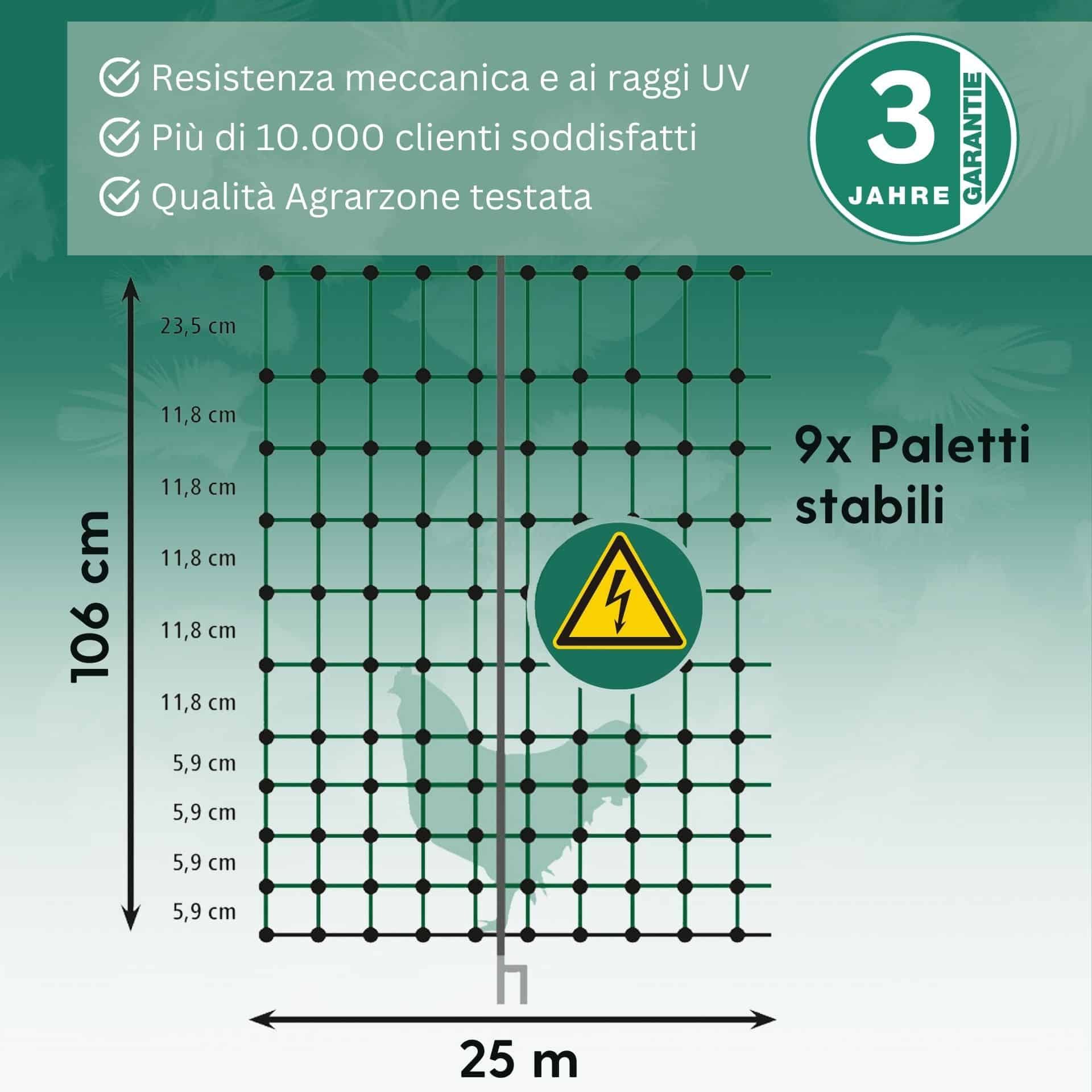 Agrarzone Geflügelnetz Classic mit Strom, Doppelspitze, grün 25 m x 106 cm