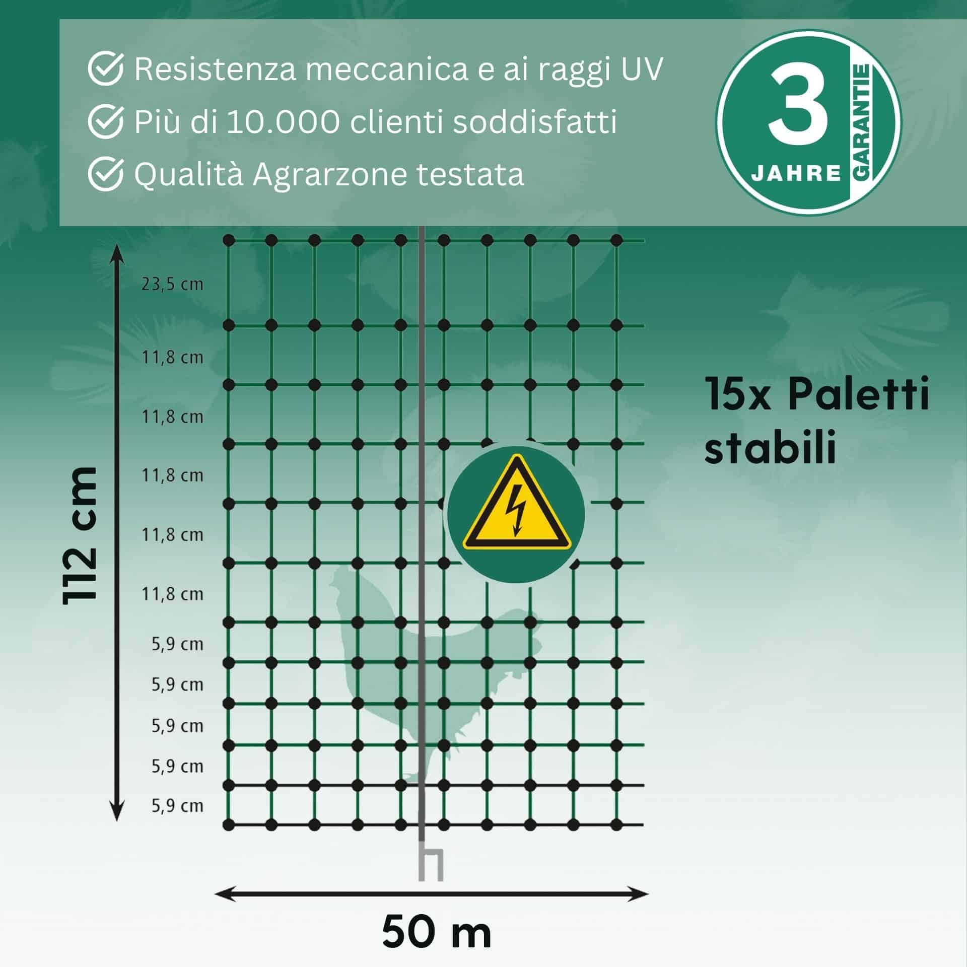 Agrarzone Geflügelnetz Classic mit Strom, Doppelspitze, grün 50 m x 112 cm