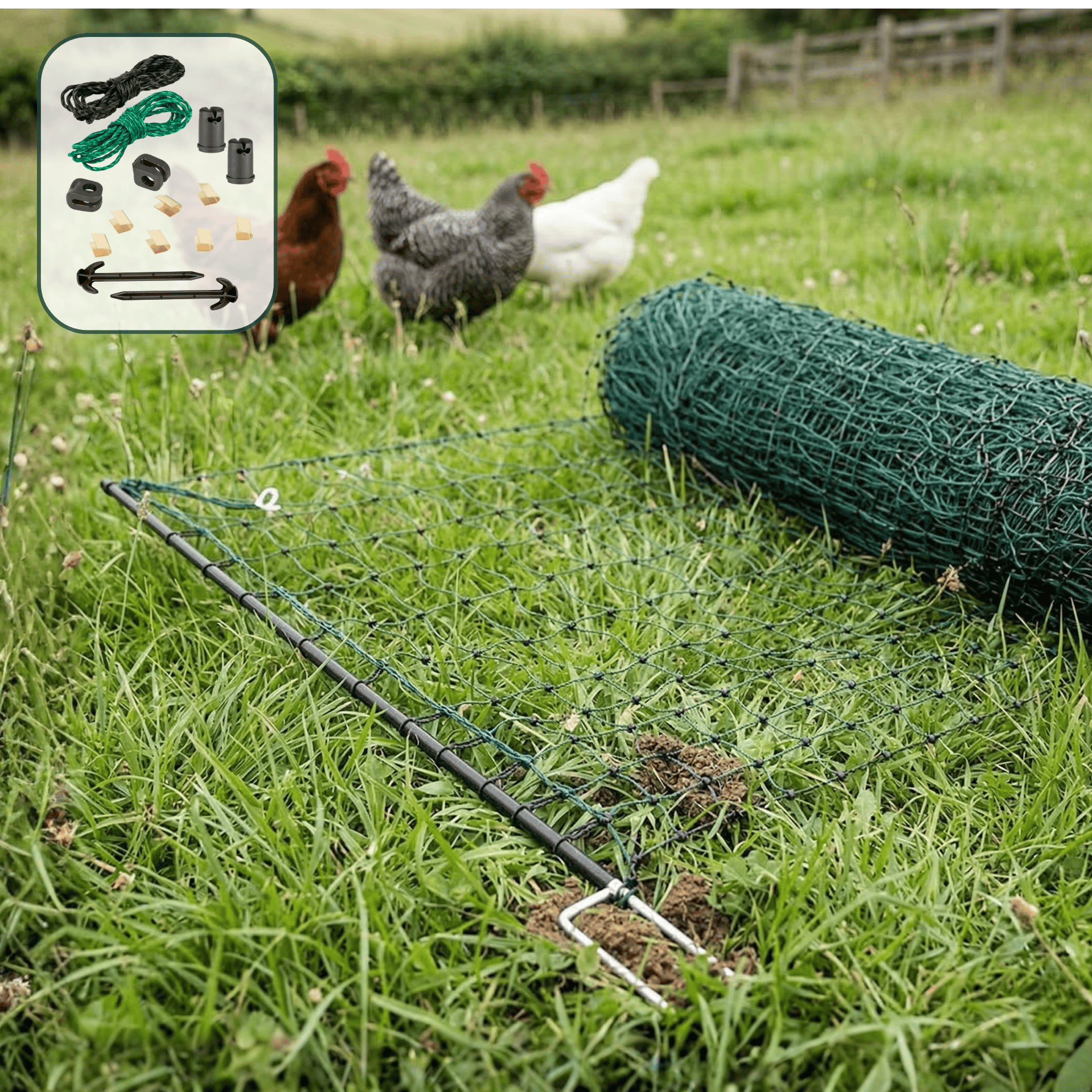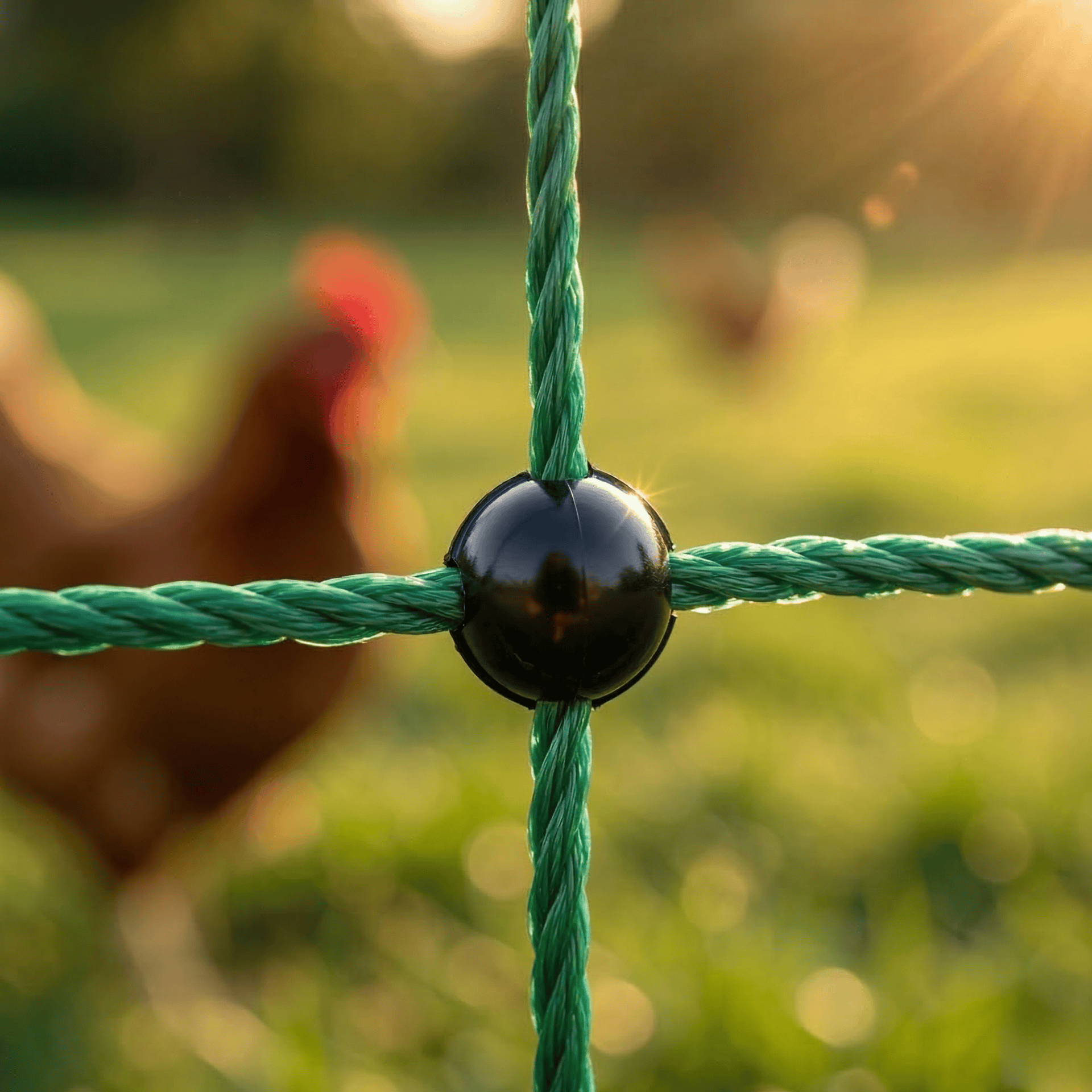 - Kopfisolator und Bodenstopper bieten sicheren Halt für das Geflügelnetz