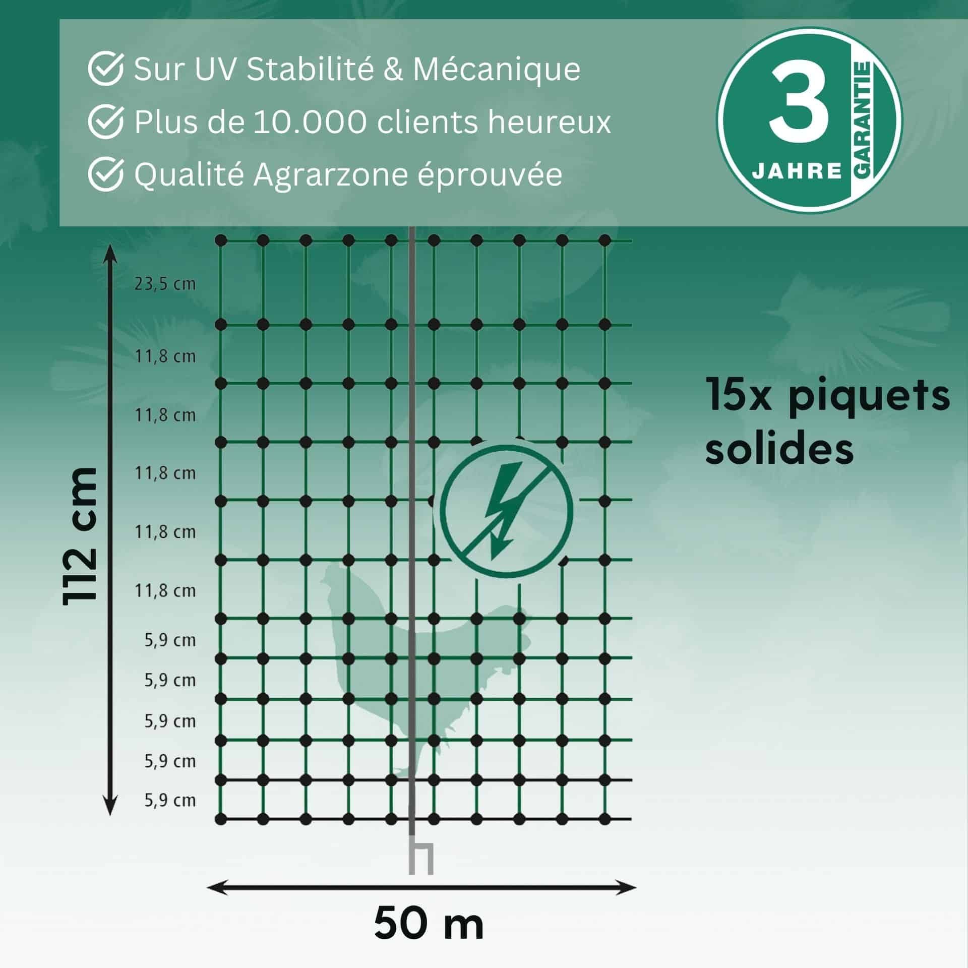 Agrarzone Geflügelnetz Classic ohne Strom, Doppelspitze, grün 50 m x 112 cm