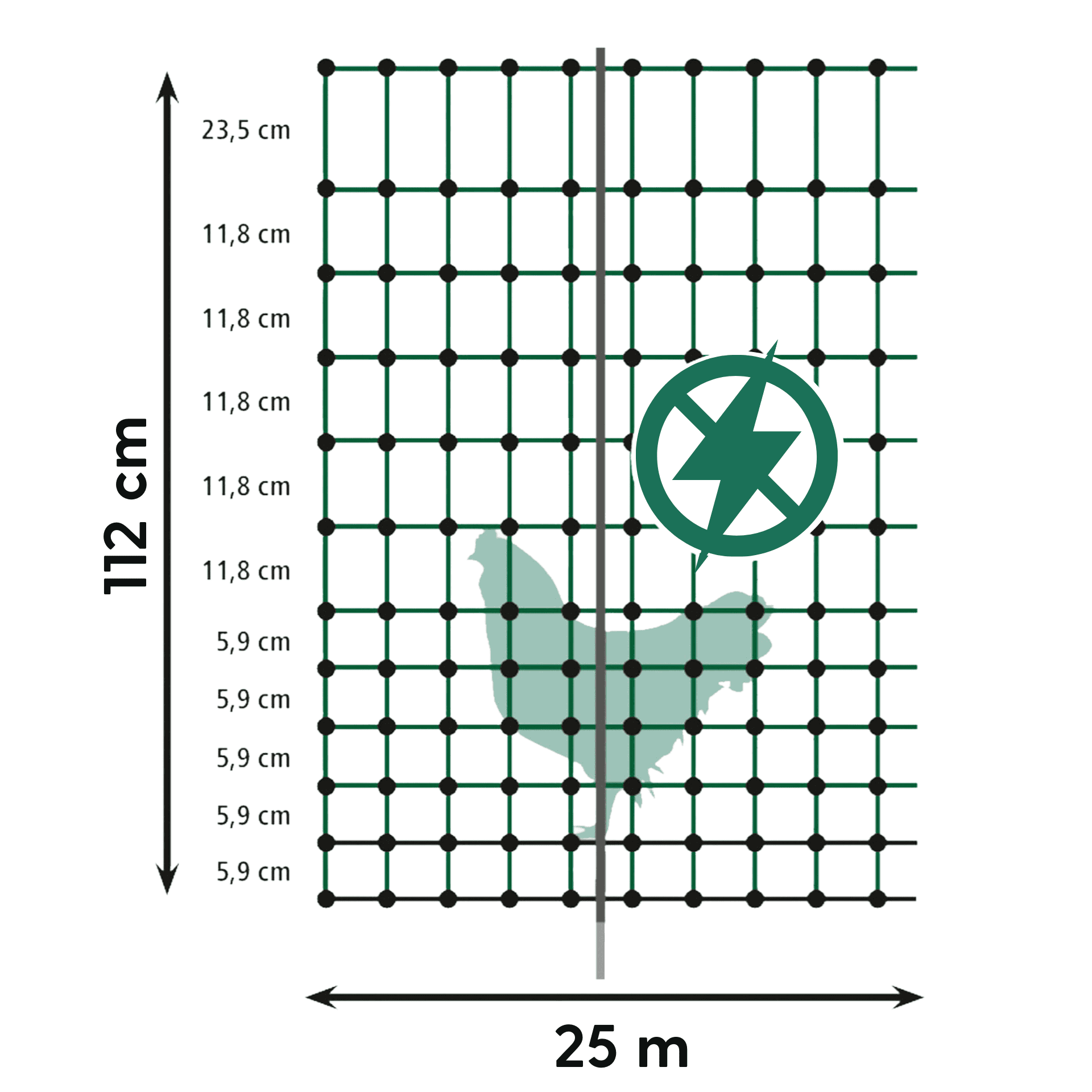 Agrarzone Geflügelnetz Classic ohne Strom, Einzelspitze, grün 25 m x 112 cm