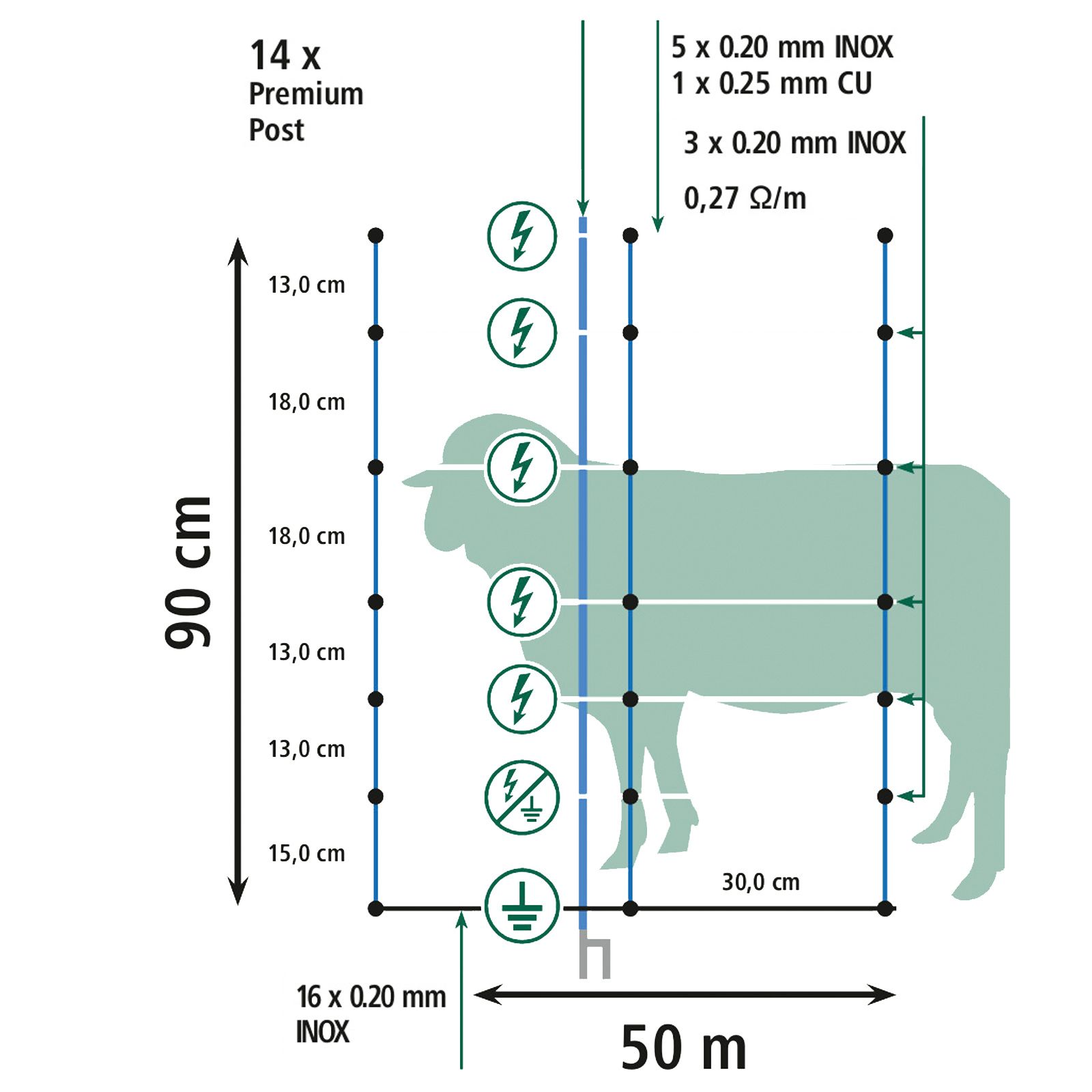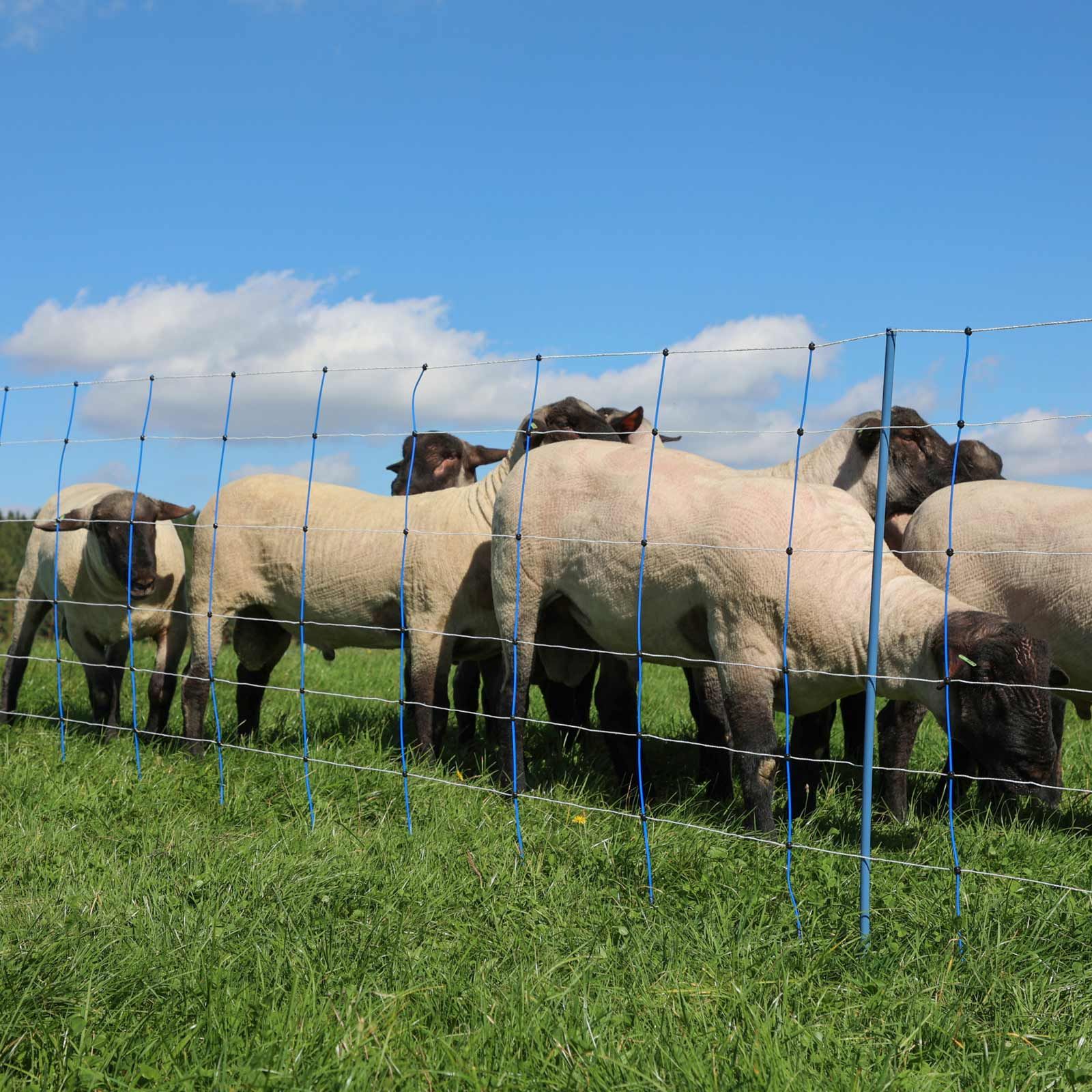 Ausgestattet mit den neuen PREMIUM Pfählen sind in diesem komplett neuen Netz die bewährten Stärken der TitanNet Schafnetze mit vielseitigsten Anschlussmöglichkeiten für den professionellen Einsatz in der Schafhaltung vereint. Das 50 m lange Schafnetz ist universell einsetzbar und ermöglicht Schafen, Ziegen, Lämmern usw. höchste Hütesicherheit. Durch die Farbkombination blau-weiß ist eine sehr gute Sichtbarkeit gewährleistet - ideal für den Einsatz in der Wild- und Wolfsabwehr.