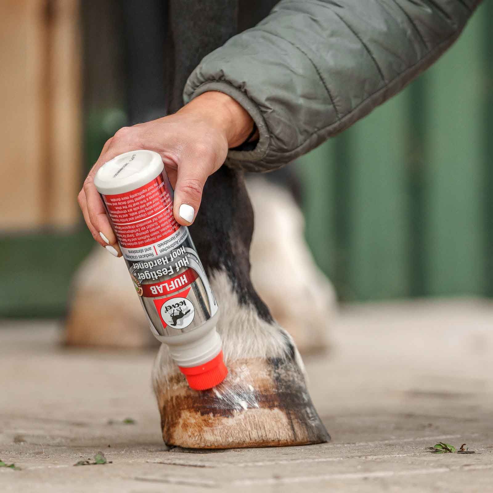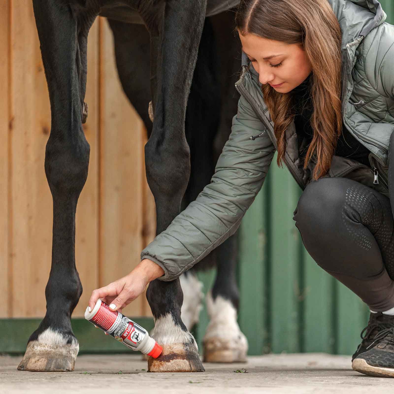 Vermindert Ausbrechen und Hornabrieb bei Pferdehufen.
