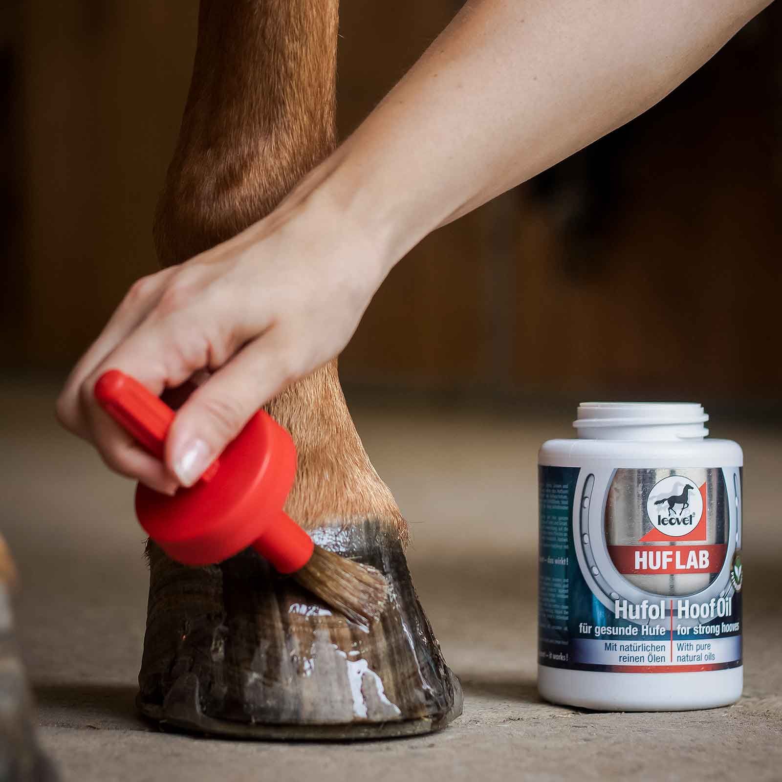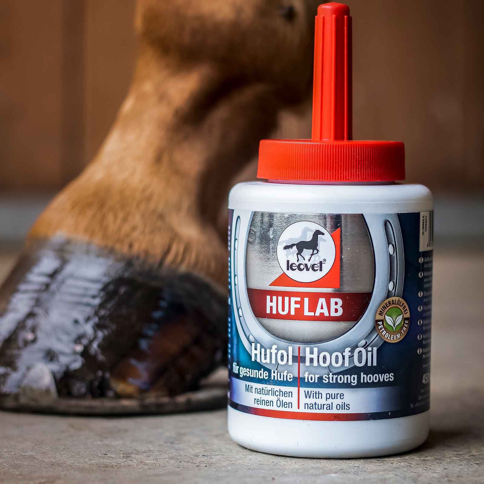 Durch die Pflanzenöle von Avocado, Jojoba, Sesam und Calendula im Huflab Huföl von Leovet wird der Huf gepflegt, genährt und das Hufhorn bleibt elastisch und gesund. Das enthaltene Jojobaöl spendet Feuchtigkeit und wird beinahe rückstandslos aufgenommen. Durch das Vitamine A und E im Avocadoöl wird die Feuchtigkeit besser im Huf gespeichert. Das Sesamöl hat einen besonders hohen Anteil an Omega-6-Fettsäuren, versorgt den Huf mit Vitaminen und aktiviert das Hufwachstum. Das Leovet Huflab Huföl für Pferde schützt vor losen Hufwänden und Strahlfäule. Zudem verleiht es dem Huf langen Glanz.