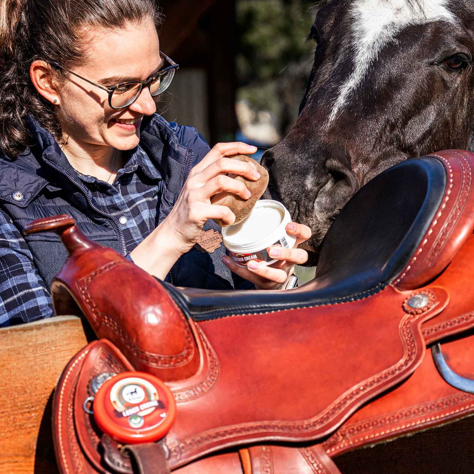 Die Ledercreme ist ideal für die regelmäßige Sattel- & Zaumzeug-Pflege alle 3 bis 4 Wochen geeignet.
