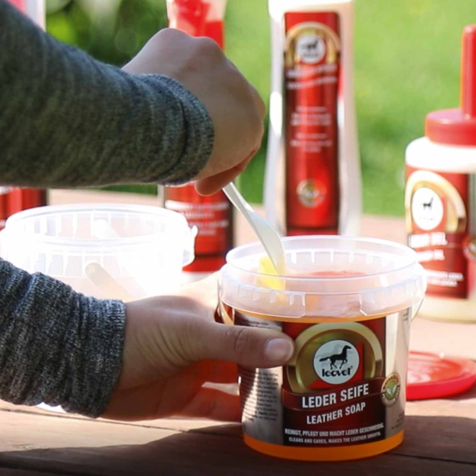Die Lederseife von Leovet ist auch als Allroundreiniger rund um den Stall und das Haus einsetzbar. Die Seife mit Glycerin ist mineralölfrei und biologisch abbaubar.