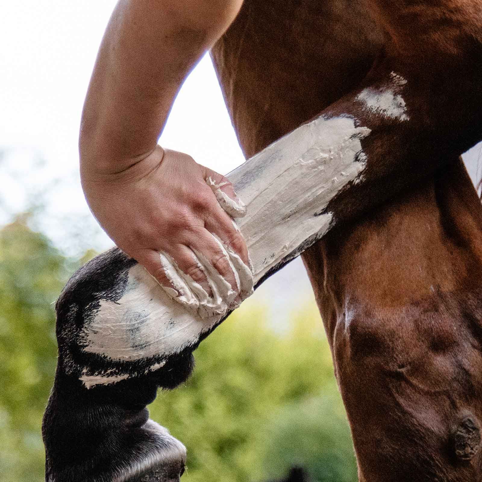 Die Kombination Tonerde & Arnika regeneriert, mobilisiert & aktiviert Pferdebeine.
