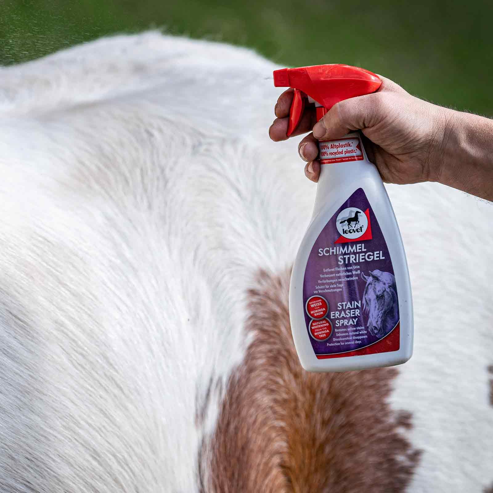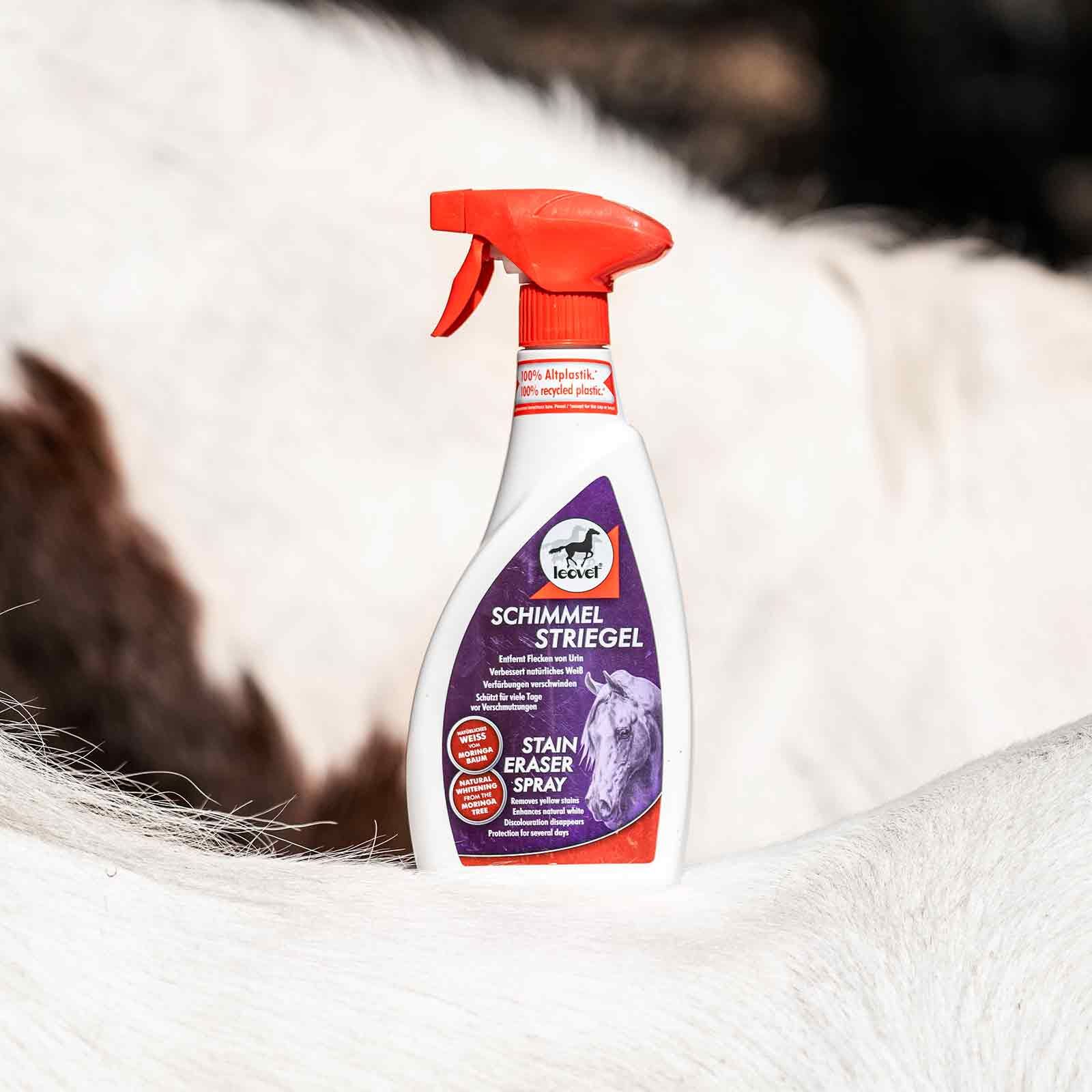 Der Leovet Schimmel Spray kann direkt auf hartnäckige Flecken von Urin, Mist oder Gras gesprüht werden. Nach einer kurzen Einwirkungszeit lässt sich der Schmutz leicht vom Fell abbürsten oder mit einem Handtuch abreiben. Die Verfärbungen verschwinden und ein klares Weiß kommt wieder hervor und wird durch einen brillanten Weißeffekt strahlend verstärkt. Durch die Moringa Samen wird das Fell sanft, nachhaltig und gründlich gereinigt. Natürliche Proteine des Moringabaums verhindern bei regelmäßiger Anwendung neue Anlagerung von Schmutzpartikeln und Verfärbungen bis zu zwei Tage.