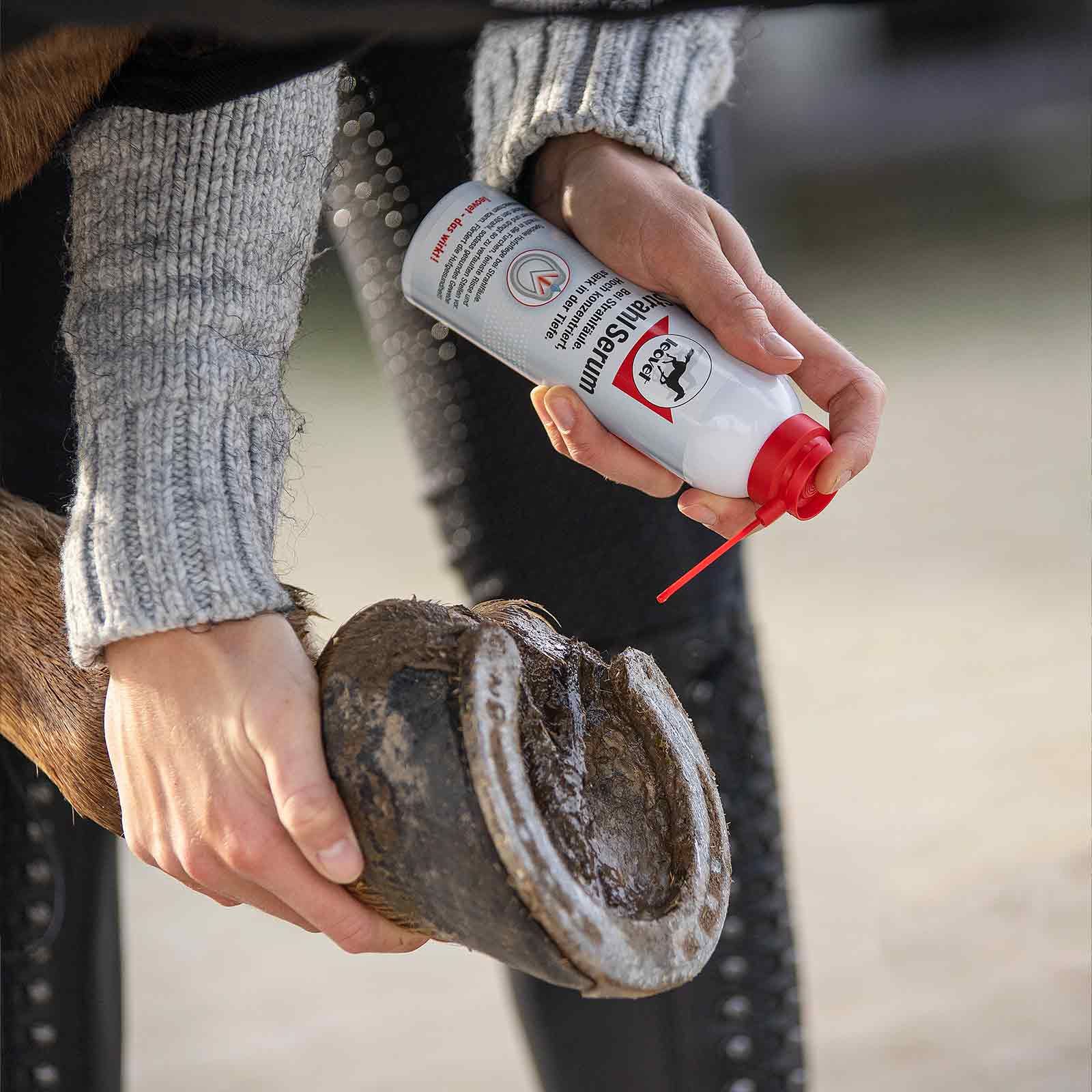 Das Leovet Strahlserum ist die spezielle Hufpflege bei Strahlfäule, der Spray ermöglicht den gezielten Einsatz bei akuten Fällen. Es dringt bei Anwendung tief in die Furchen, feinste Risse und Taschen vor, bis zu den verfaulten Stellen. Das Leovet Strahlserum trocknet den Strahl, sodass gesundes Gewebe nachwachsen kann. Die Hufgesundheit wird gefördert und das Horn wächst gestärkt nach! Der Strahlserum Spray enthält natürliche Inhaltsstoffe wie Teebaumöl, Balsamterpentilöl, Alaun & Kieferholzextrakt die das Hufgewebe trocknen, härten & stärken.