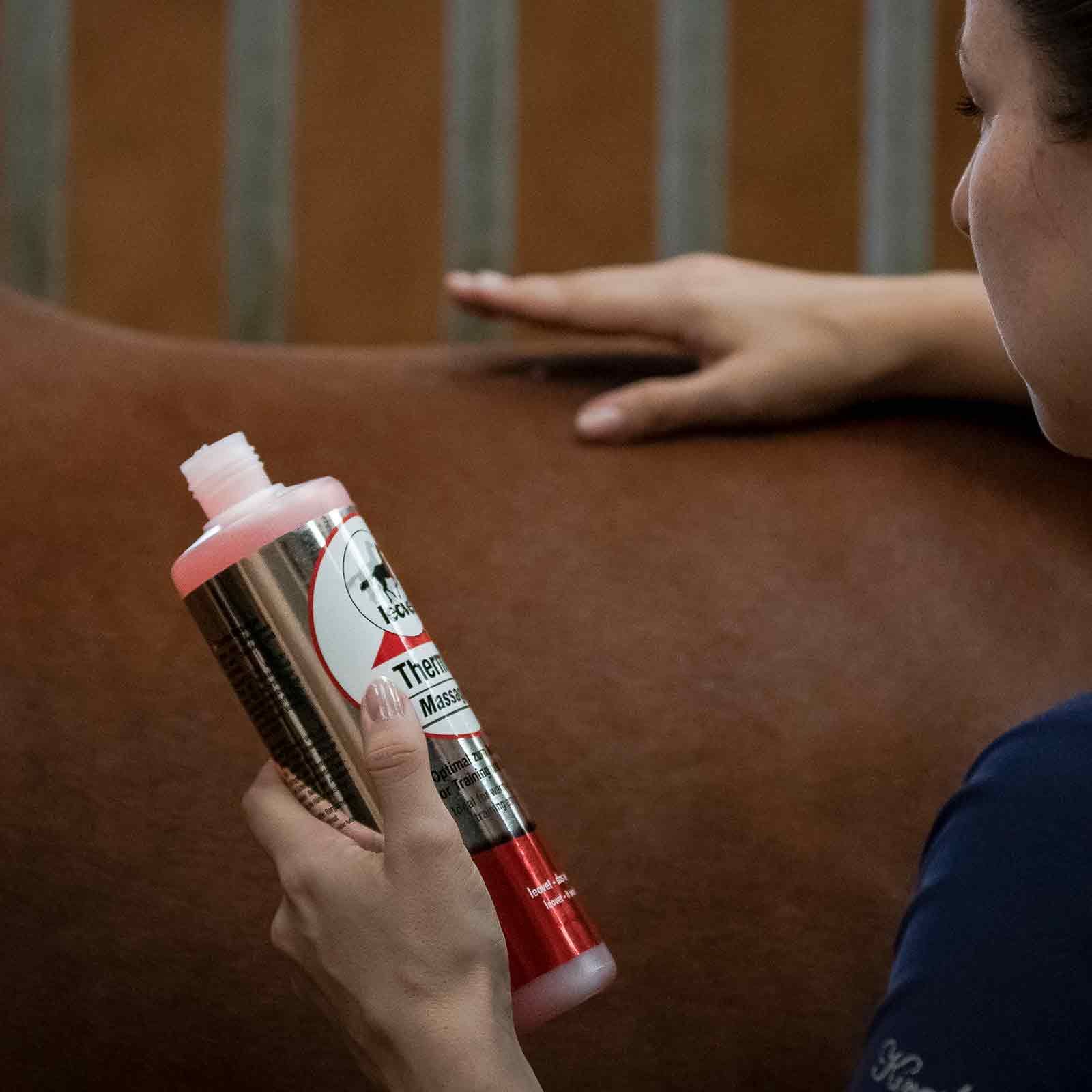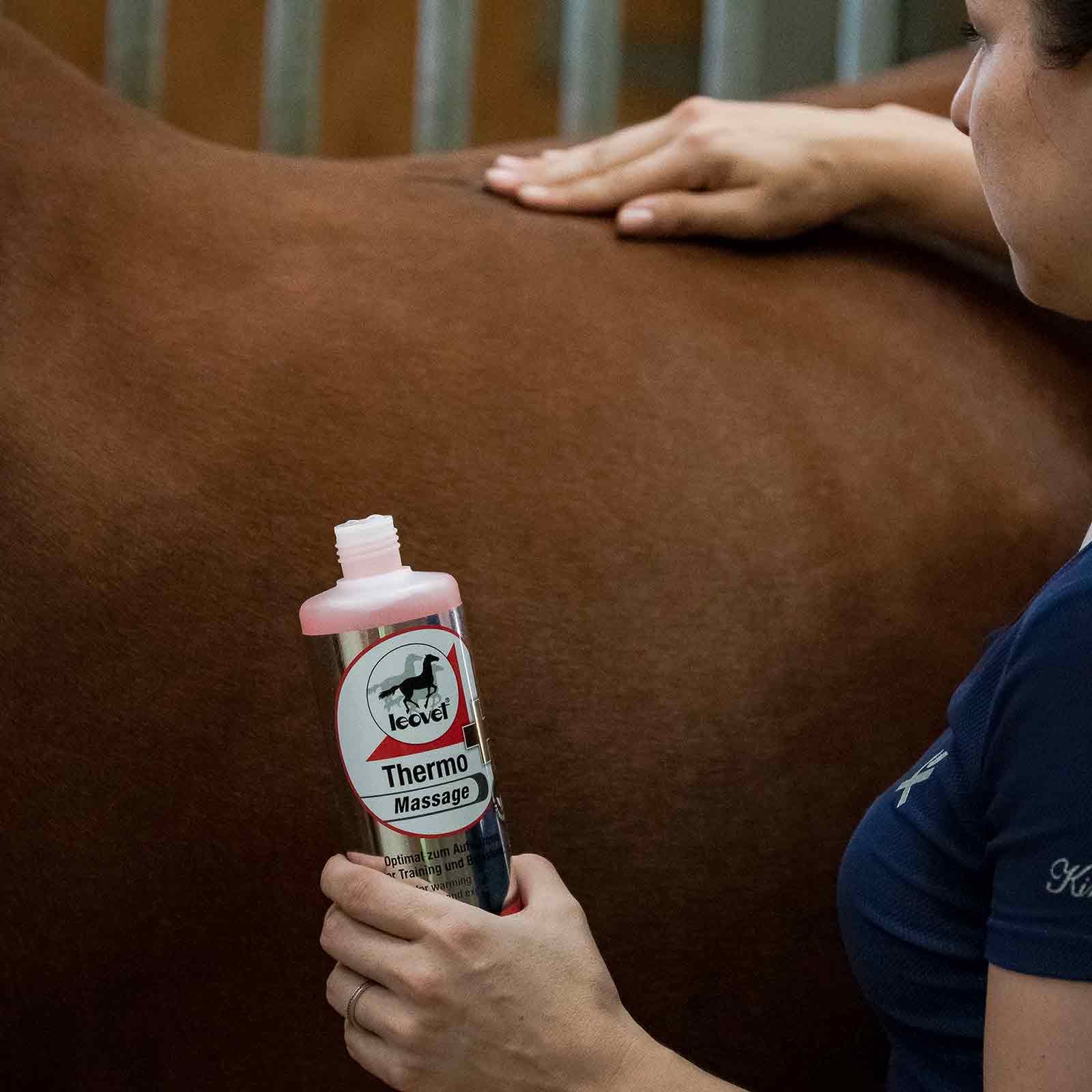 Das Leovet Thermo-Massage-Gel wärmt gezielt ohne langwierige Massage. Es löst Muskel-Verspannungen und ist somit ideal zum Aufwärmen vor dem Training und der Belastung geeignet. Besonders angenehm ist das Thermo Massage Gel für die Rückenmuskulatur vor dem Auflegen des Sattels. Das enthaltene Bergamotöl aus den Früchten der Bergamotte trägt zum Lösen der Muskulatur bei. Das Massagegel ist auch nach dem Training zur anschließenden Entspannung einsetzbar. Durch die kurze Wirkdauer werden Überreizungen von Haut und Gewebe vermieden.