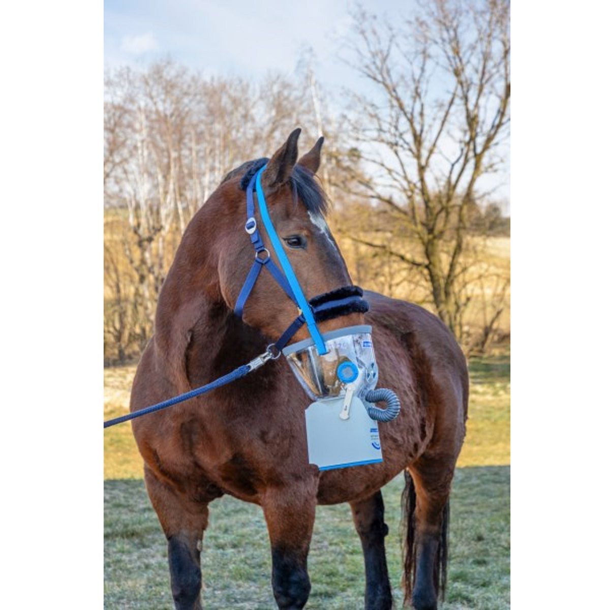 Die transparente Inhalationsmaske für den ersten ventilationsabhängigen Pferde-Inhalator AirOne Flex von Hippomed.