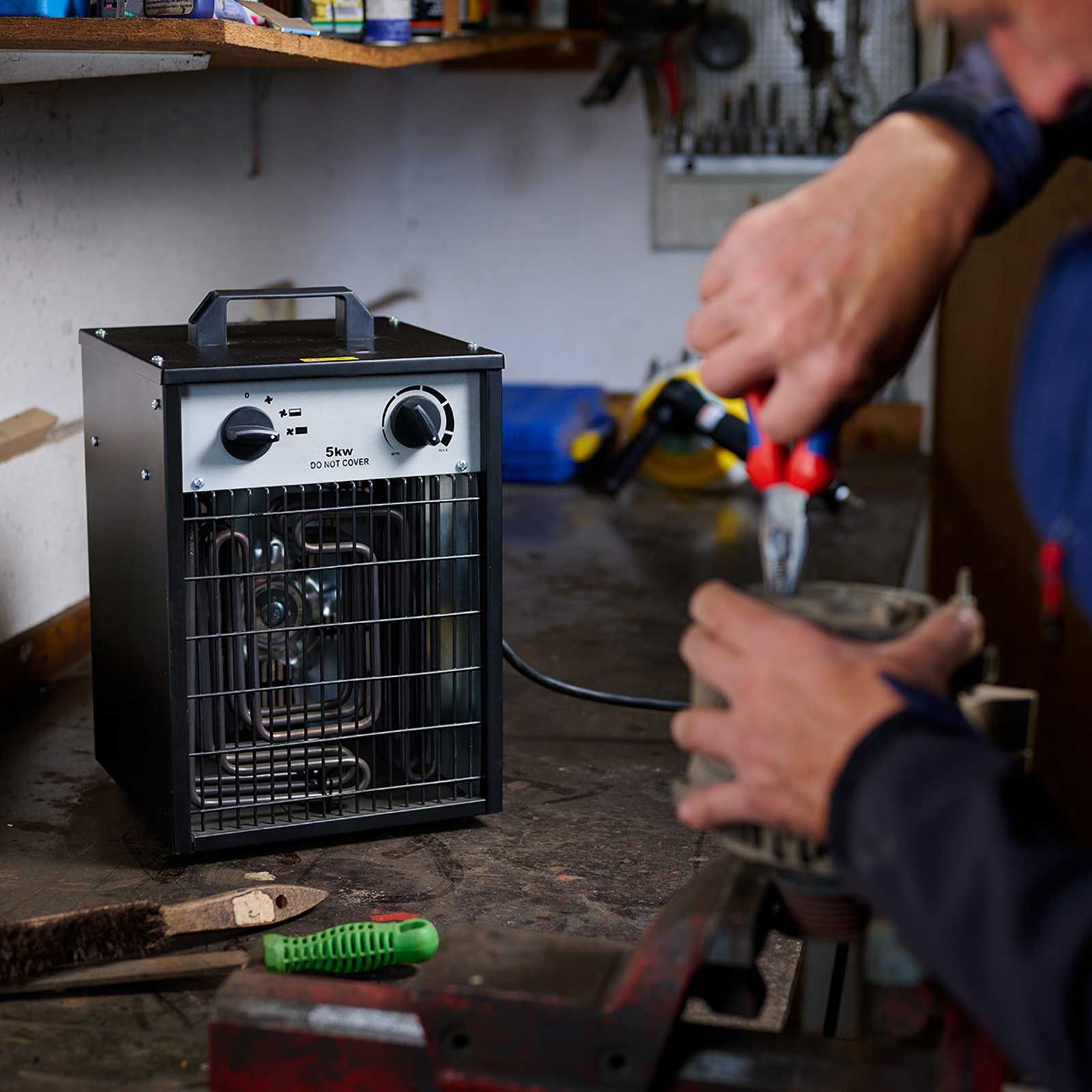 Mit dem wärmespendenden 5 kW Heizlüfter von ELMAG geschlossene Räume schnell und zuverlässig aufheizen.