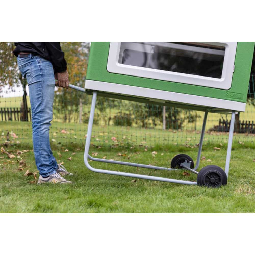Das Hühnerhaus Mobile Coop ist für den mobilen Einsatz konzipiert. Ein sehr stabiles Metallgestell mit zwei Rädern und Griff an der Seite ermöglicht ein einfaches Anheben und Verfahren des Hühnerstalls. Durch seine sehr robuste und innovative Bauweise mit hochwertigen, langlebigen Schrauben und Beschlägen, ist ein dauerhaftes Zuhause für Ihre Hühner sicher. Die gute Isolierung durch doppelwandige Elemente hält den fahrbaren Hühnerstall im Sommer angenehm kühl und reduziert einen Wärmeverlust im Winter.