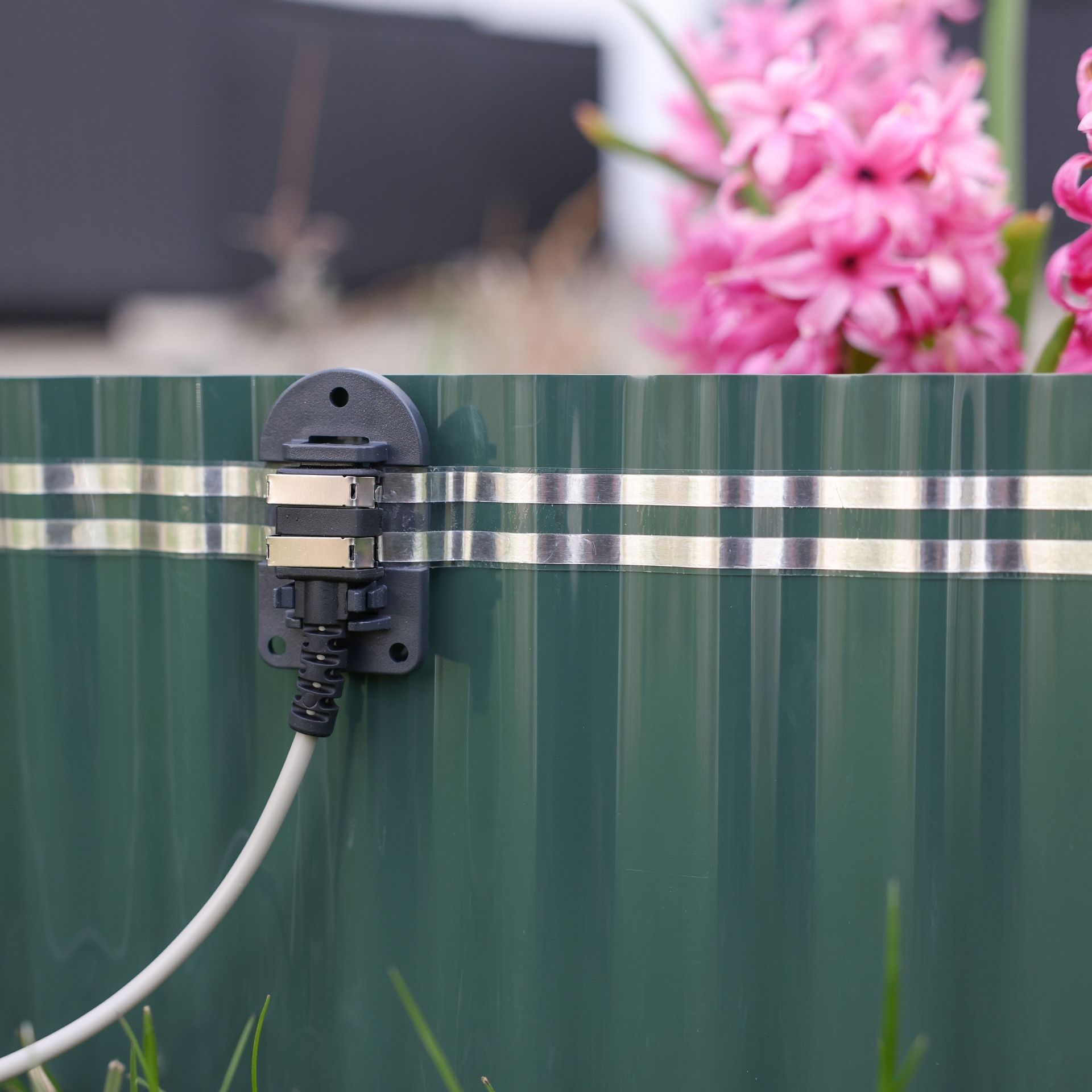 Mittels Beetverbinder, welche als Zubehör erhältlich sind, können auch mehrere Beete mit einem einzigen Stromgerät betrieben werden. So lässt sich der Schneckenzaun auf maximal 30 m Gesamtlänge erweitern.