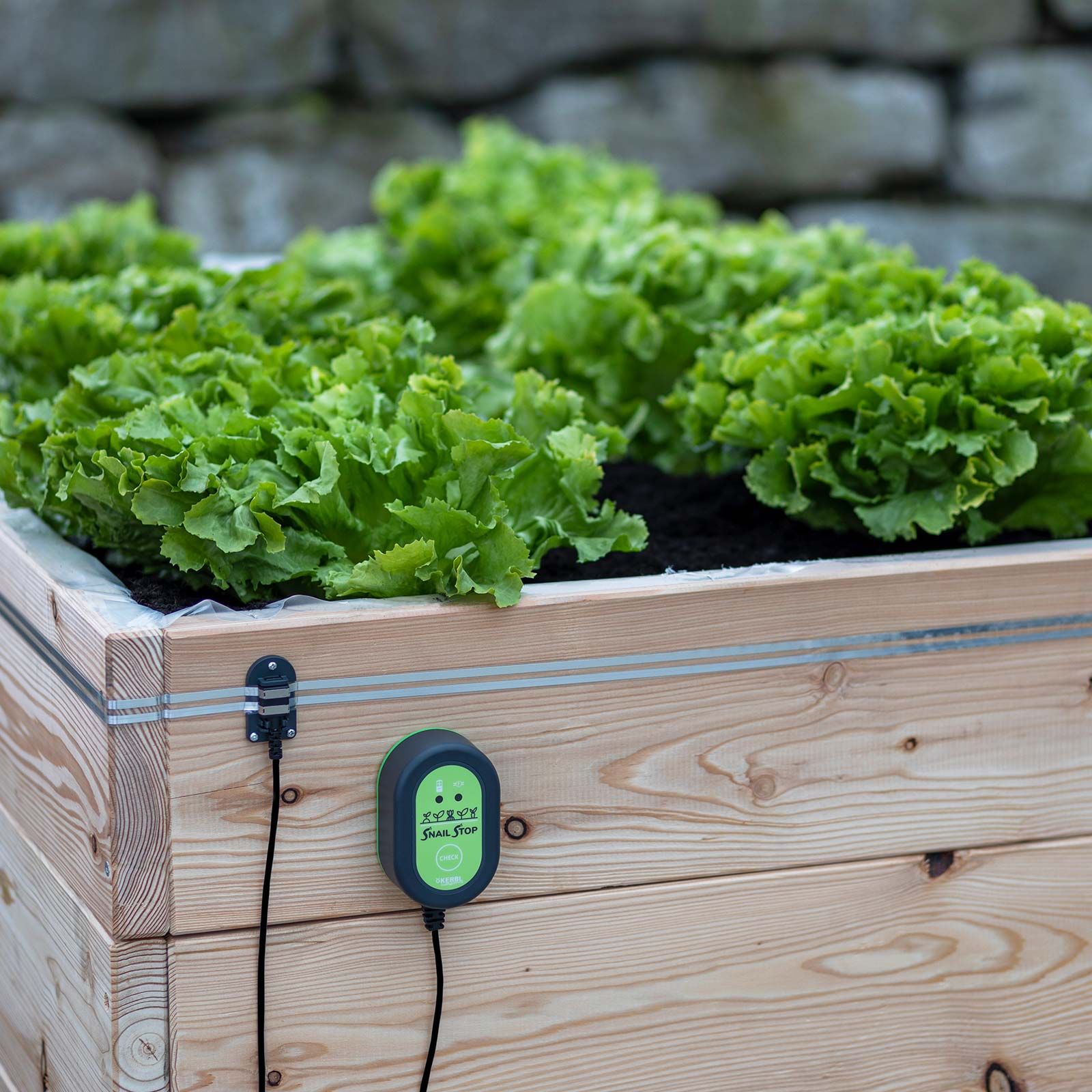 Schnecken im Hochbeet? Der Elektrische Schneckenzaun SnailStop schützt Gemüse effektiv und ohne Gift vor Schnecken. Der Snailstop Schneckenzaun ist im Vergleich zu anderen Bekämpfungsmethoden nicht spürbar und unbedenklich für Mensch und Tier!