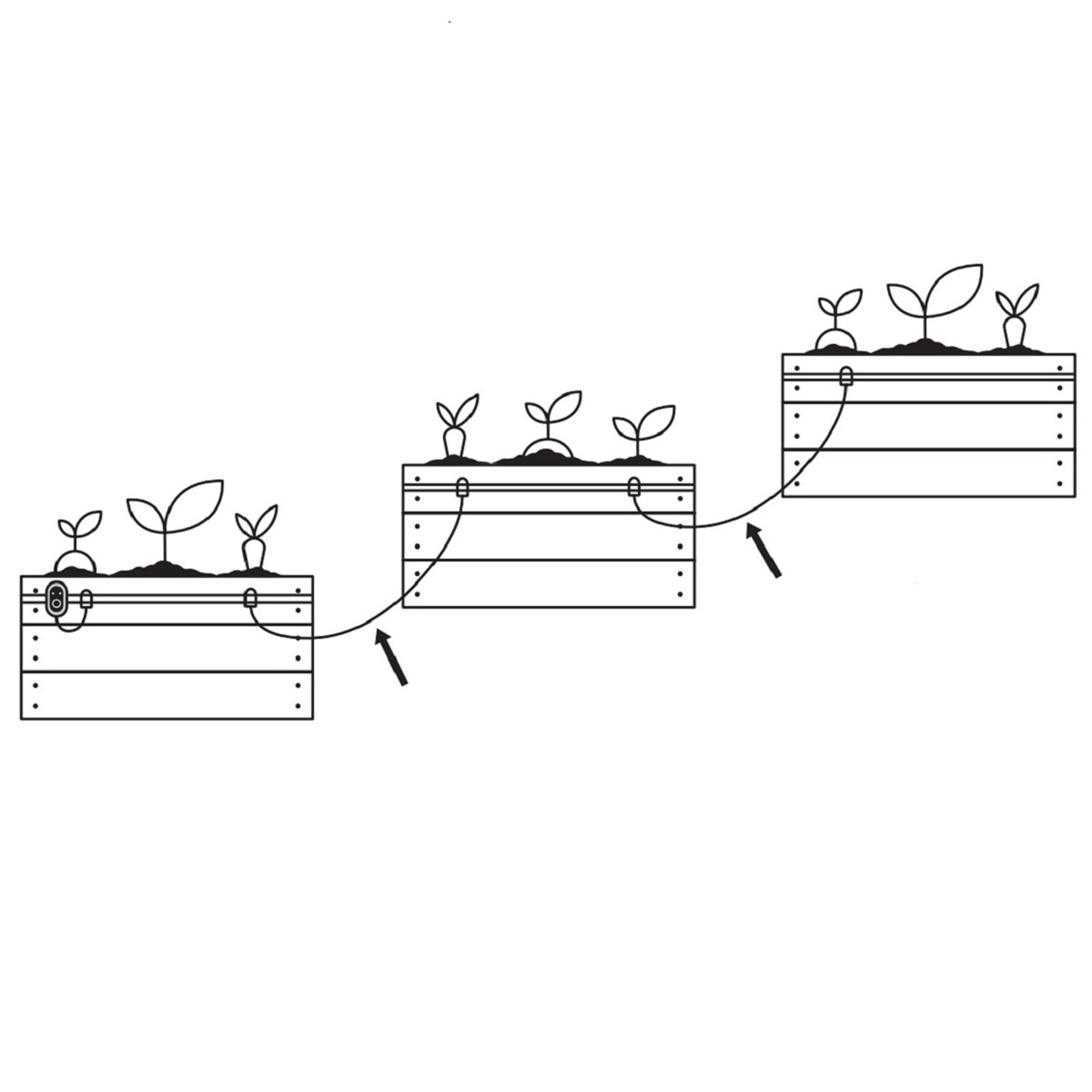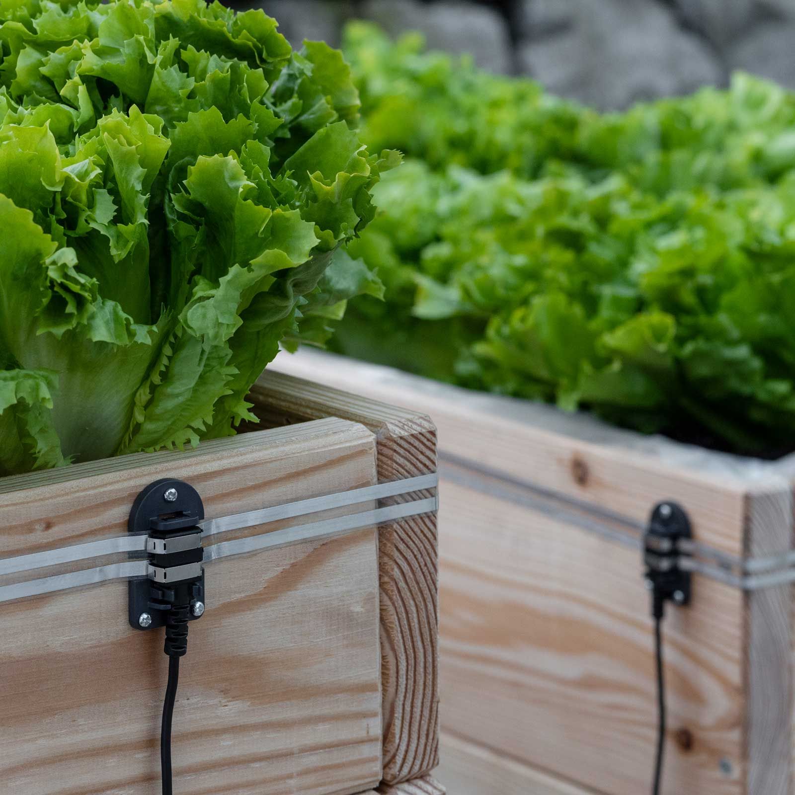 Bei Bedarf können mit den Schneckenzaun Beetverbinder mehrere separate Zäune miteinander verbunden und somit mit einem einzigen Stromgerät betrieben werden. Dies bietet sich dann an, wenn separate, nebeneinanderstehende Beete umzäunt werden sollen. Das Stromgerät wird an einem Beet angeschlossen. Ein weiteres Beet wird mithilfe des Beetverbinders verbunden und mit Strom versorgt. Der SnailStop Beetverbinder besteht aus zwei mit einem Kabel verbundenen Kontaktclips und zwei Halteplatten.