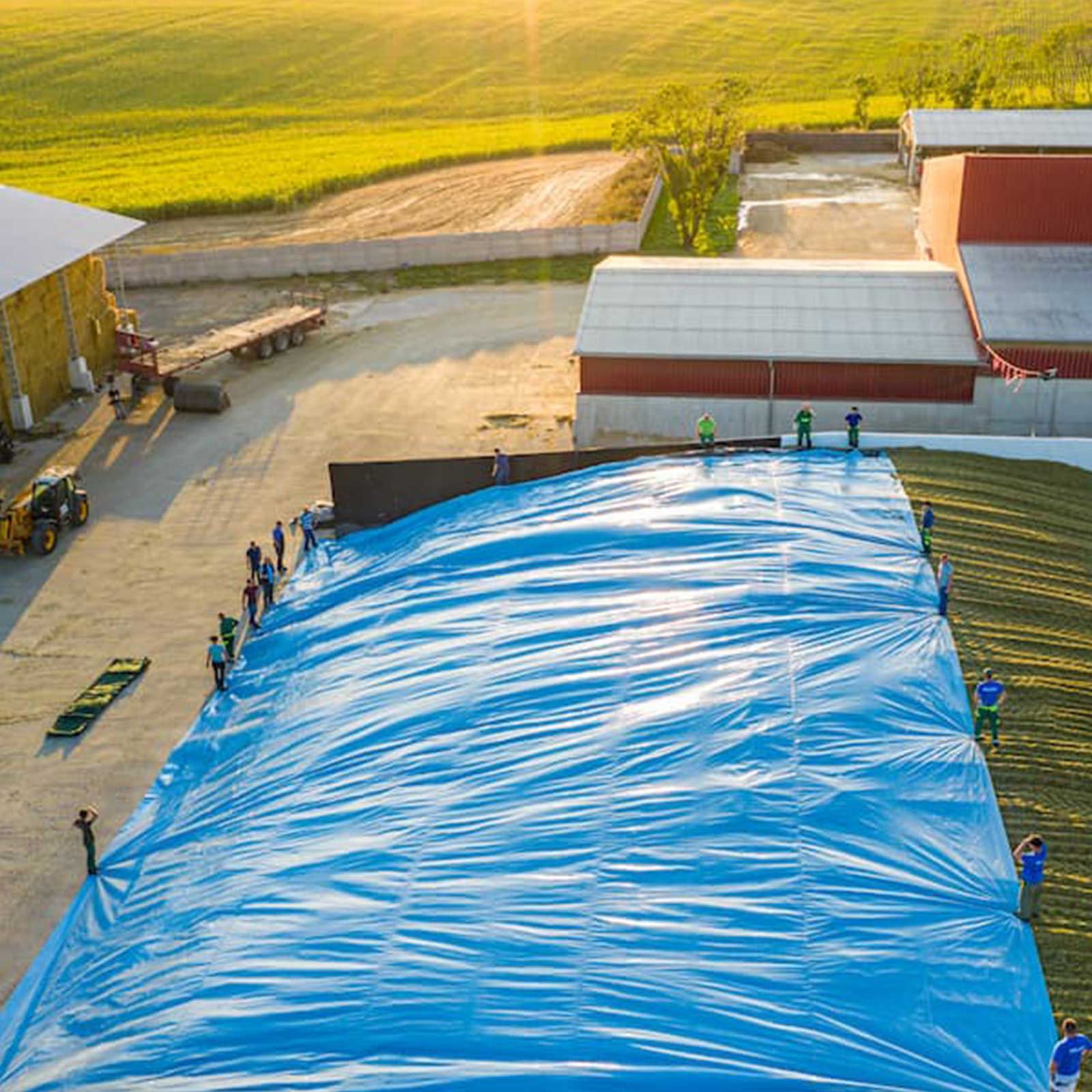 Diese Siloplane ist garantiert 18 Monate UV-stabil & temperaturbeständig. Dies wird durch die hellblaue Oberseite gewährleistet. Außerdem wird die Silage durch die schwarze Schicht auf der Unterseite vor Lichteinfall geschützt.