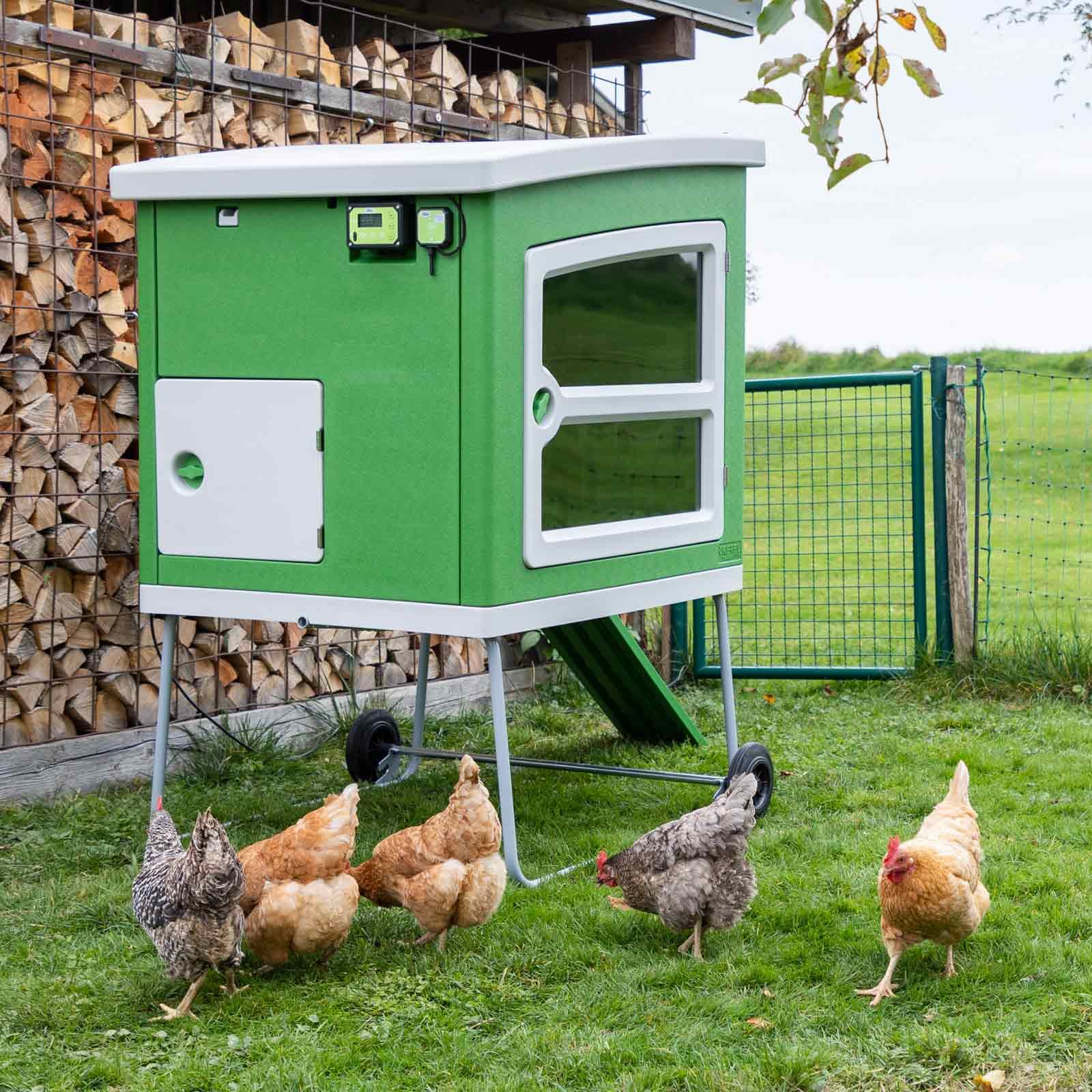 Das zusätzlich erhältliche Connectivity-Modul ermöglicht ein bequemes Programmieren per App. Dies ermöglicht eine einfache Steuerung der verschiedenen SmartCoop Module und eine schnelle Anpassung an geänderte Anforderungen. Separat erhältliche Zubehörartikel wie die Stallbeleuchtung, der Temperatursensor, der externen Tageslichtsensor, die Stallbelüftung, die Tränkeheizung uvm. machen das SmartCoop System individuell an Ihre Anforderungen und Bedürfnisse anpassbar.