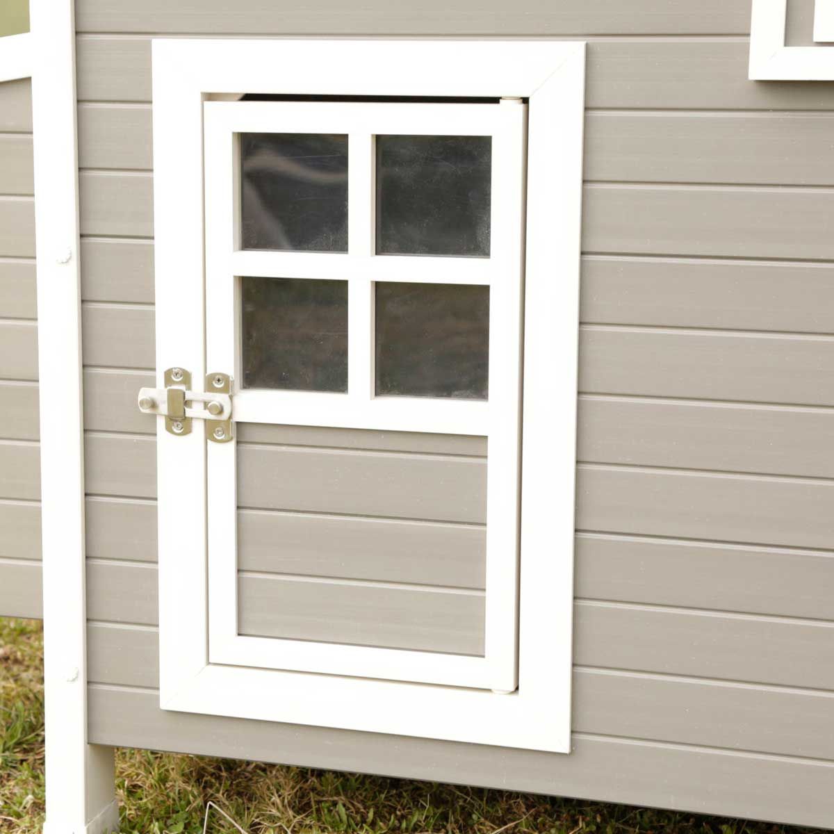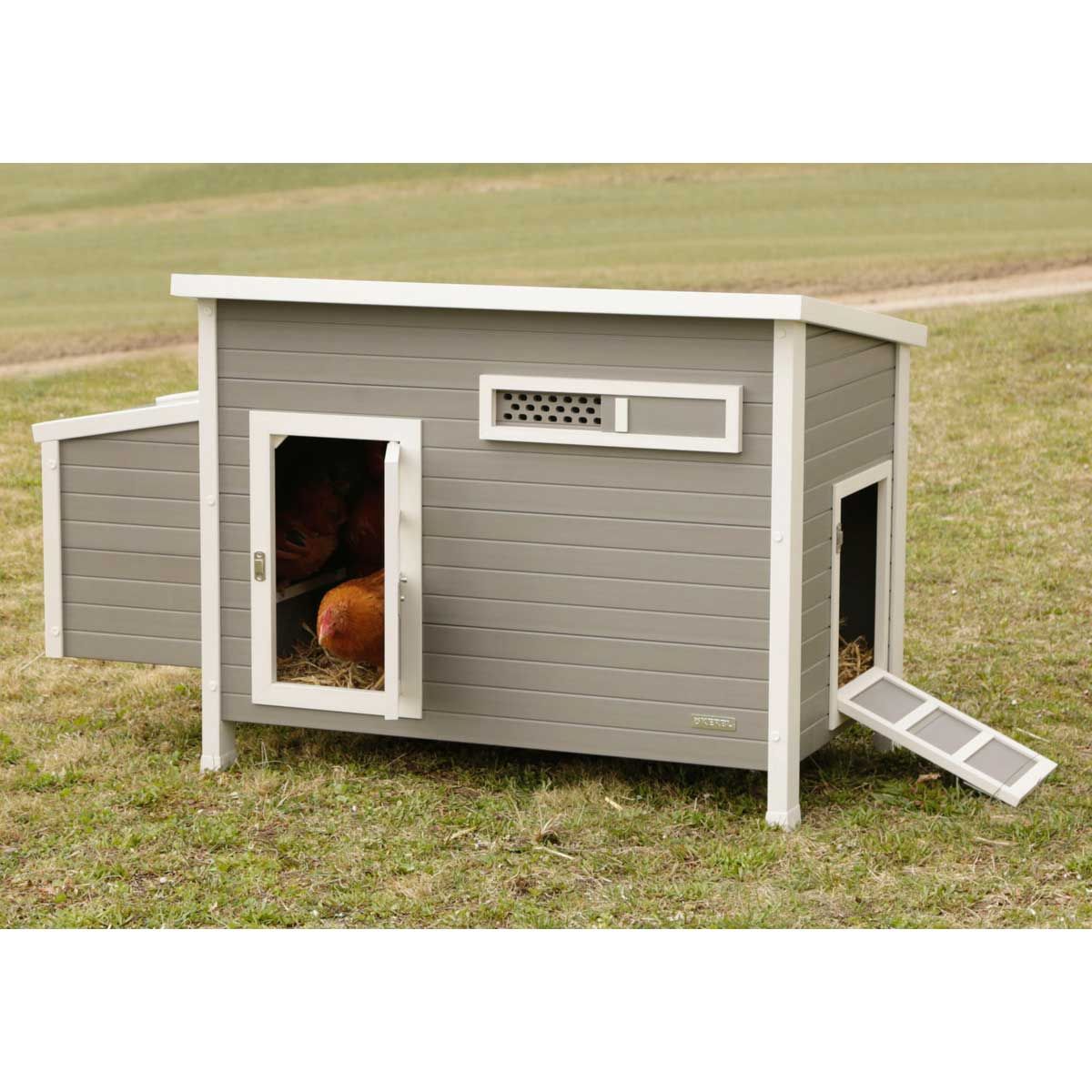 Der Hühnerstall Barney ist durch sein ECO-Kunststoff Material wartungsfrei, wetterfest und umweltfreundlich in der Herstellung. Der Geflügelstall bietet viele praktische Features, die die Geflügelhaltung erleichtern. Neben den 2 Legenestern und 2 Türen bietet der Hühnerstall auch ein Schiebefenster für eine variable Luftzirkulation sowie verlängerte Füße für eine gute Bodenbelüftung. Die präzise Verarbeitung erleichtert die Montage und so ist der Hühnerstall Barney schnell und einfach aufgebaut.