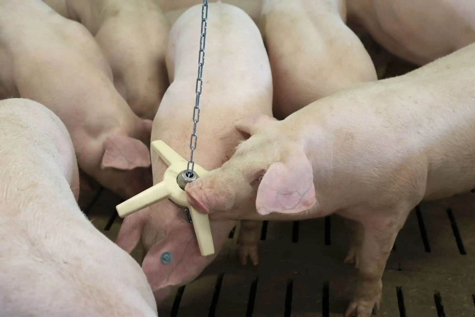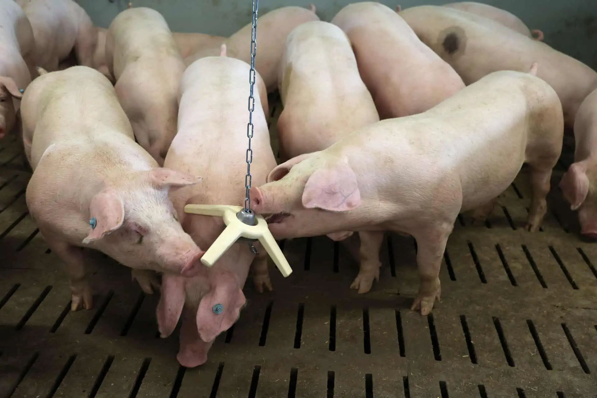 Das Schweinespielzeug BiteStar mit Aufhängekappe und Kette ist besonders geeignet für Landwirte und Tierhalter, die ihre Tiere auf sicherer und harmloser Weise beschäftigen wollen.