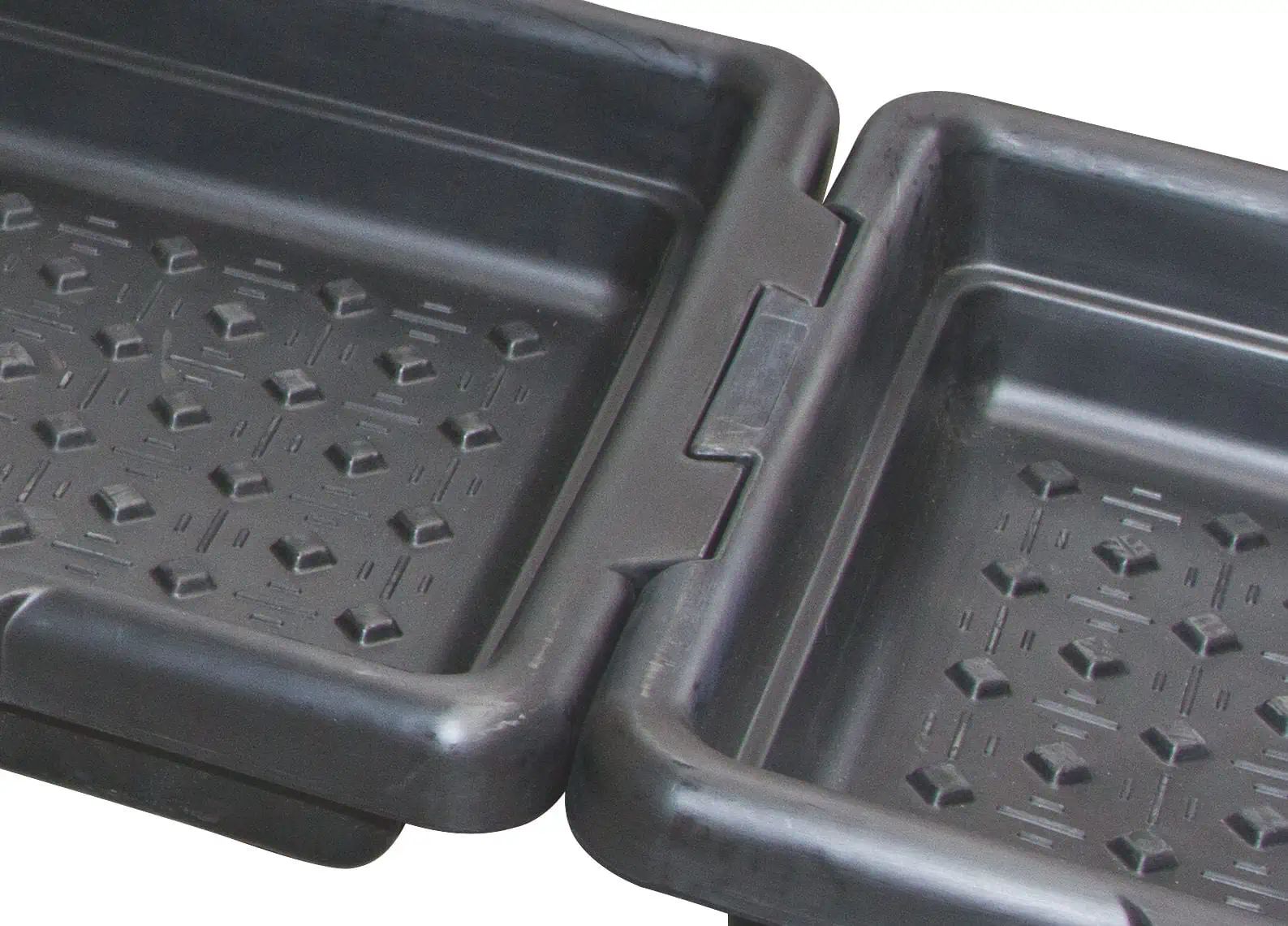 Mit der Klauenwanne SuperKombi erhältst du eine robuste und vielseitige Lösung für die professionelle Klauenpflege. Die flexible Erweiterungsmöglichkeit, sowohl längs als auch seitlich, ermöglicht eine optimale Anpassung an verschiedene Bedürfnisse und Tiergrößen. Du kannst dich dabei auf die hohe Qualität verlassen: Sie ist aus High Impact Polyethylen gefertigt und somit extrem abriebfest und chemikalienbeständig. Das macht sie besonders langlebig und einfach zu reinigen.
