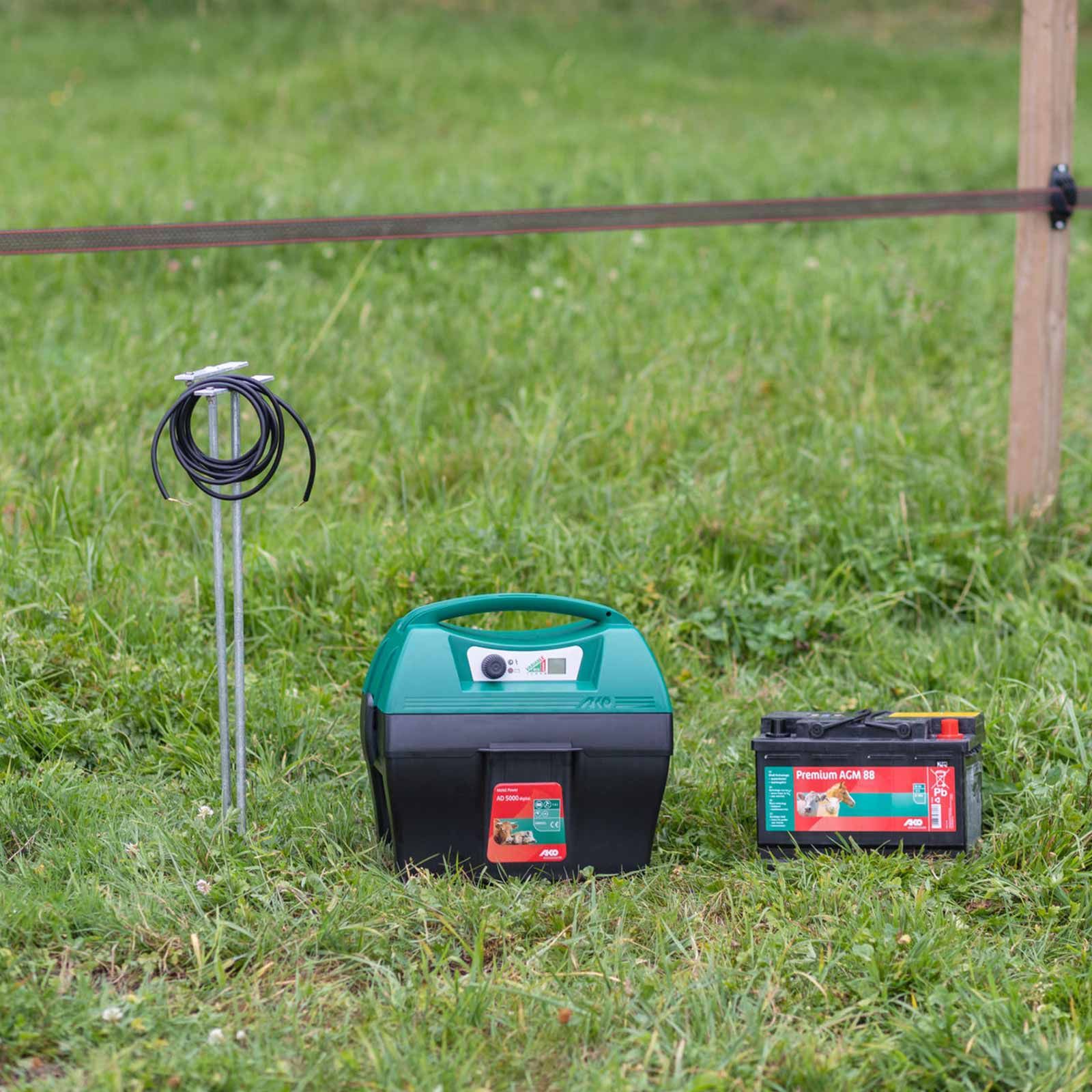 Das AKO Mobil Power AD 5000 Weidezaungerät 12V - ein ultrastarkes Akkugerät für den mobilen und extremen Einsatzbereich, selbst bei starkem Bewuchs. Mit seinem robusten und witterungsfesten Gehäuse aus hochwertigen Kunststoffen hält es den Herausforderungen im Freien stand.